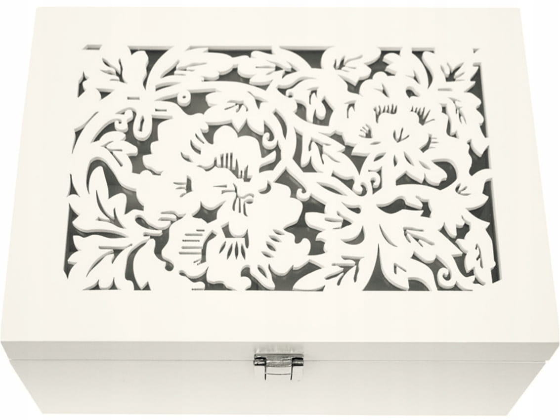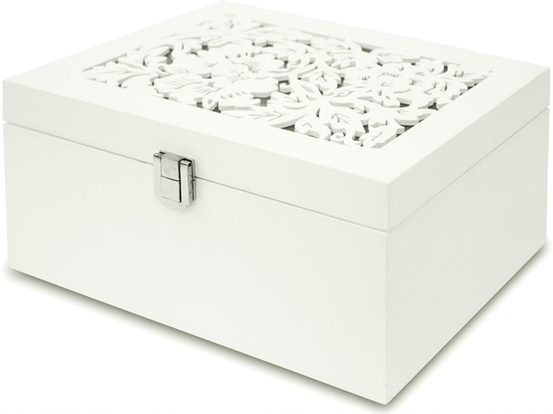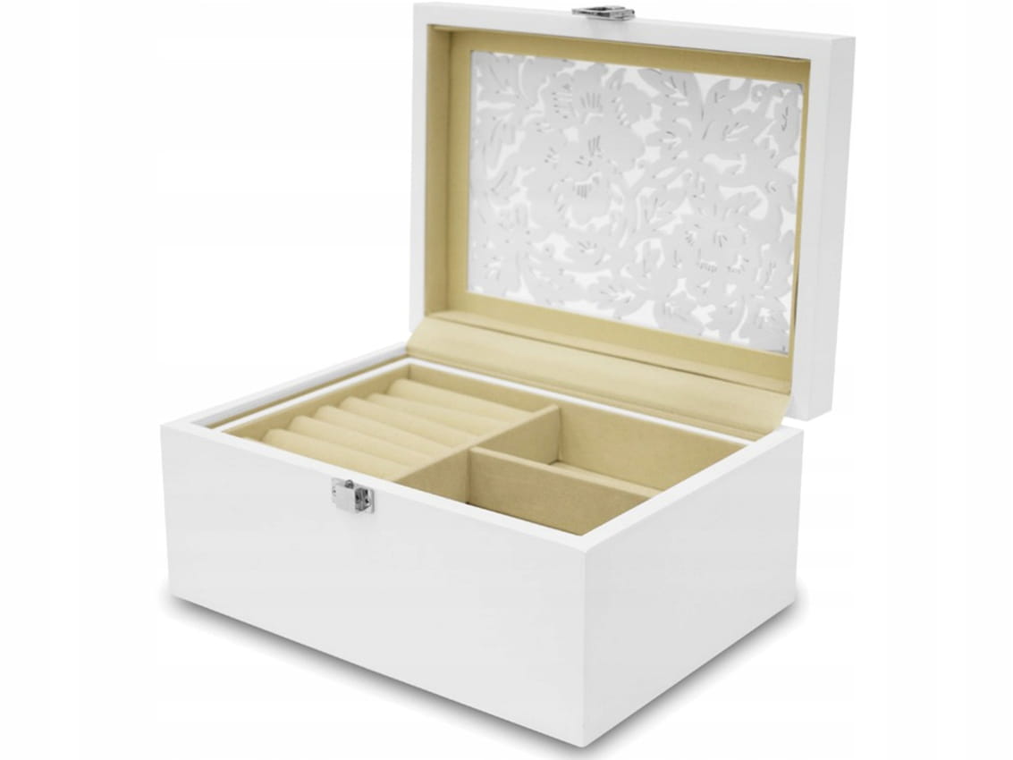 109627 Drewniana Szkatułka na Biżuterię - biała