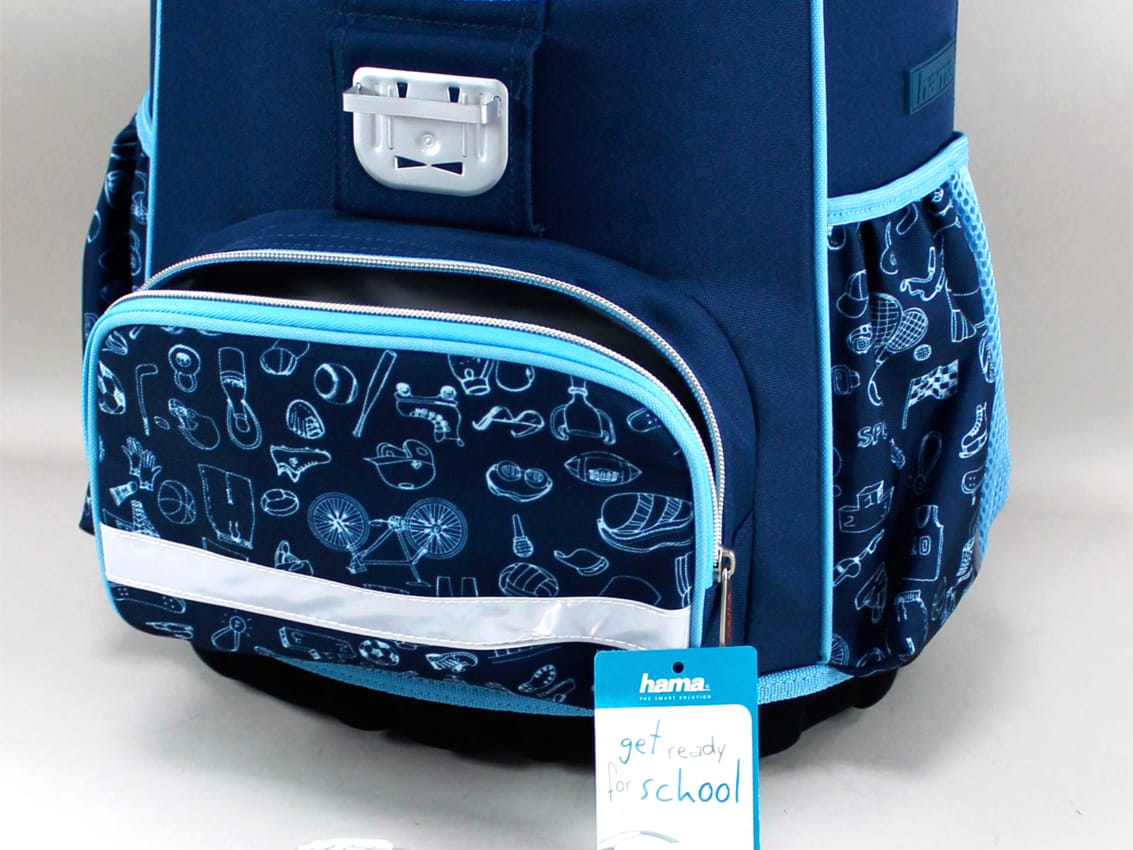 - Liczne paski odblaskowe, umieszczone z przodu i tyłu plecaka, oraz po jego bokach, zwiększają widoczność, a tym samym bezpieczeństwo Twojego Dziecka na drodze