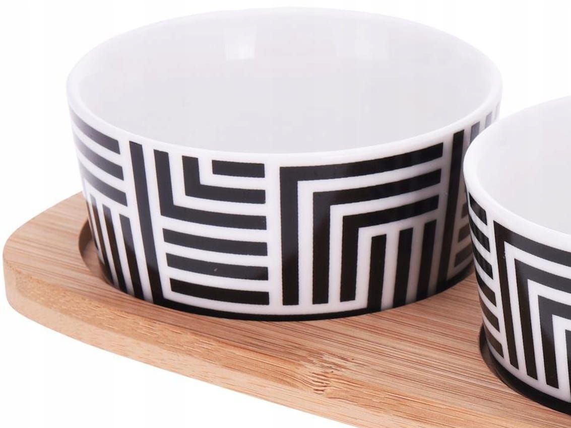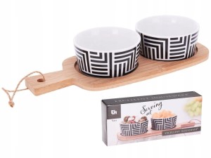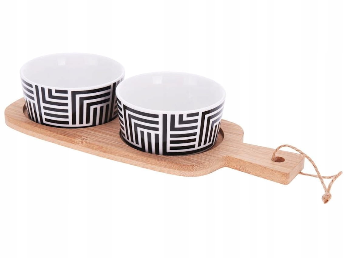 Zestaw 2 ceramicznych miseczek na tacy - do serwowania oliwek, orzeszków, przekąsek, sosów. Idealne również do słodkich mini deserów.