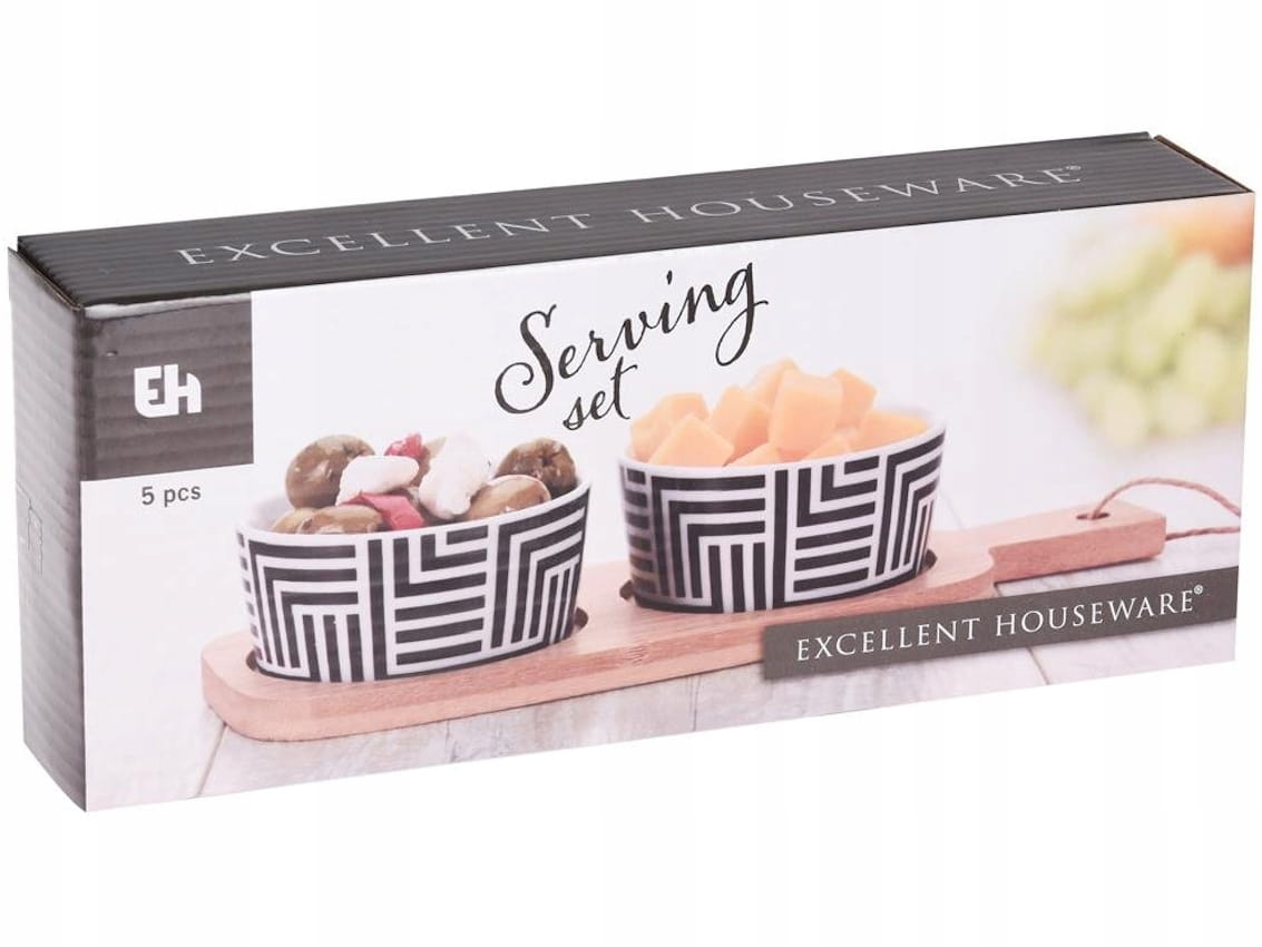 - Miseczki na prostokątnej bambusowej tacy, która ułatwia ich serwowanie