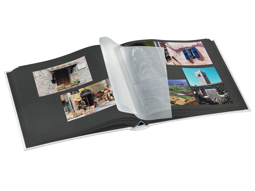 Białe przekładki z pergaminu dodatkowo chronią cenne wspomnienia. Zapobiegają one sklejaniu się zdjęć i zapewniają dodatkową ochronę.