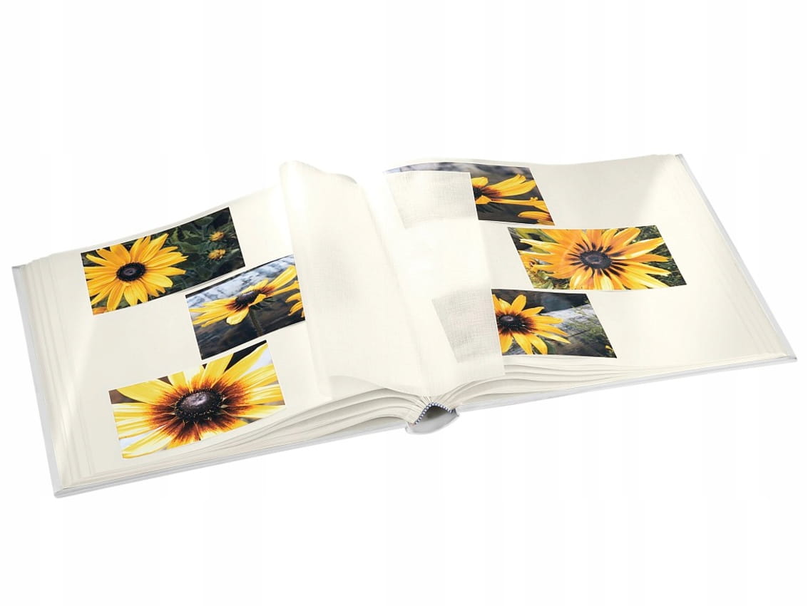 - Białe strony z kartonu zapewniają dużo miejsca do umieszczenia zdjęć