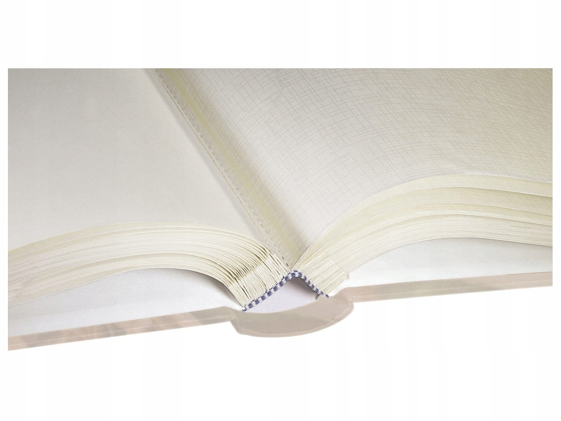 Album książkowy do wklejania zdjęć, z białymi stronami z kartonu oraz pergaminowymi przekładkami.
