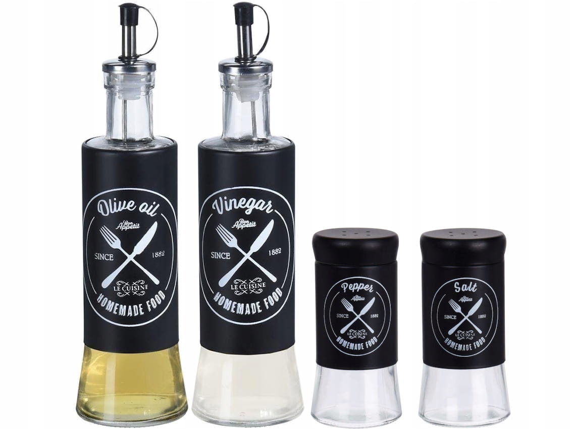 Zestaw przyprawników do soli i pieprzu + zestaw butelek na olej i ocet