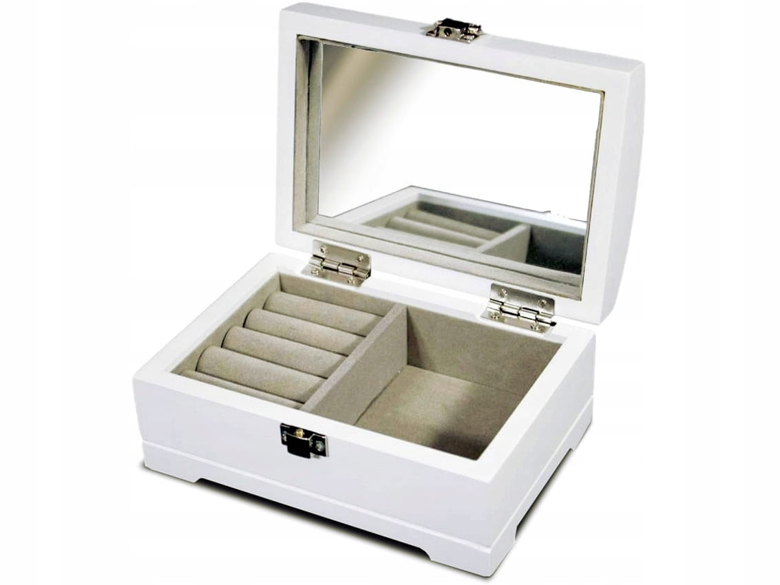 81141 Drewniana Szkatułka na Biżuterię - biała