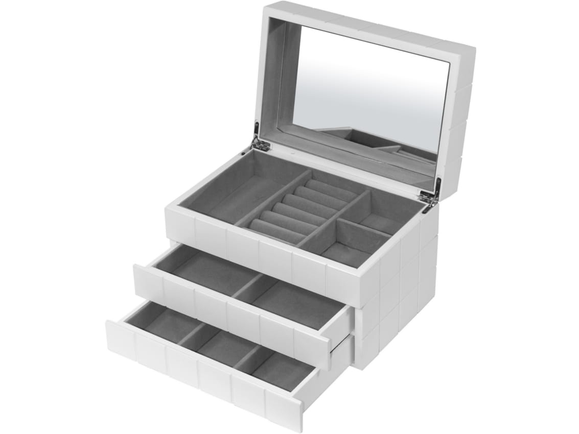 95996 Drewniana Szkatułka na Biżuterię - biała