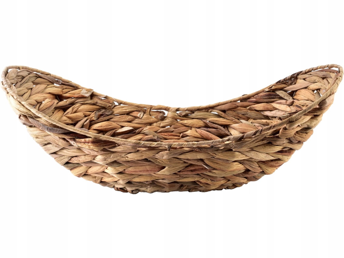 Kosz w kształcie łódki, wyplatany z hiacyntu wodnego, z serii AMPARO.