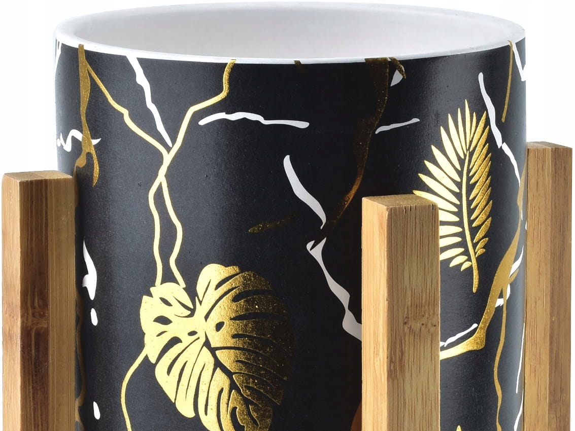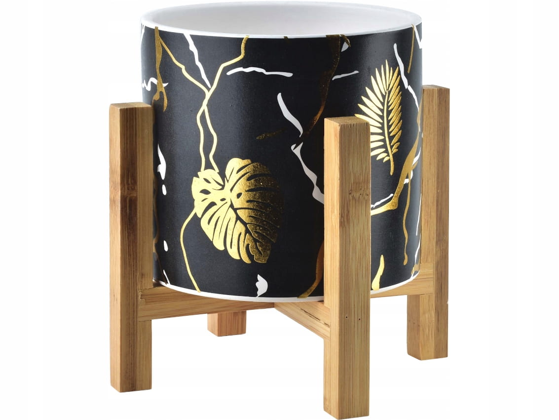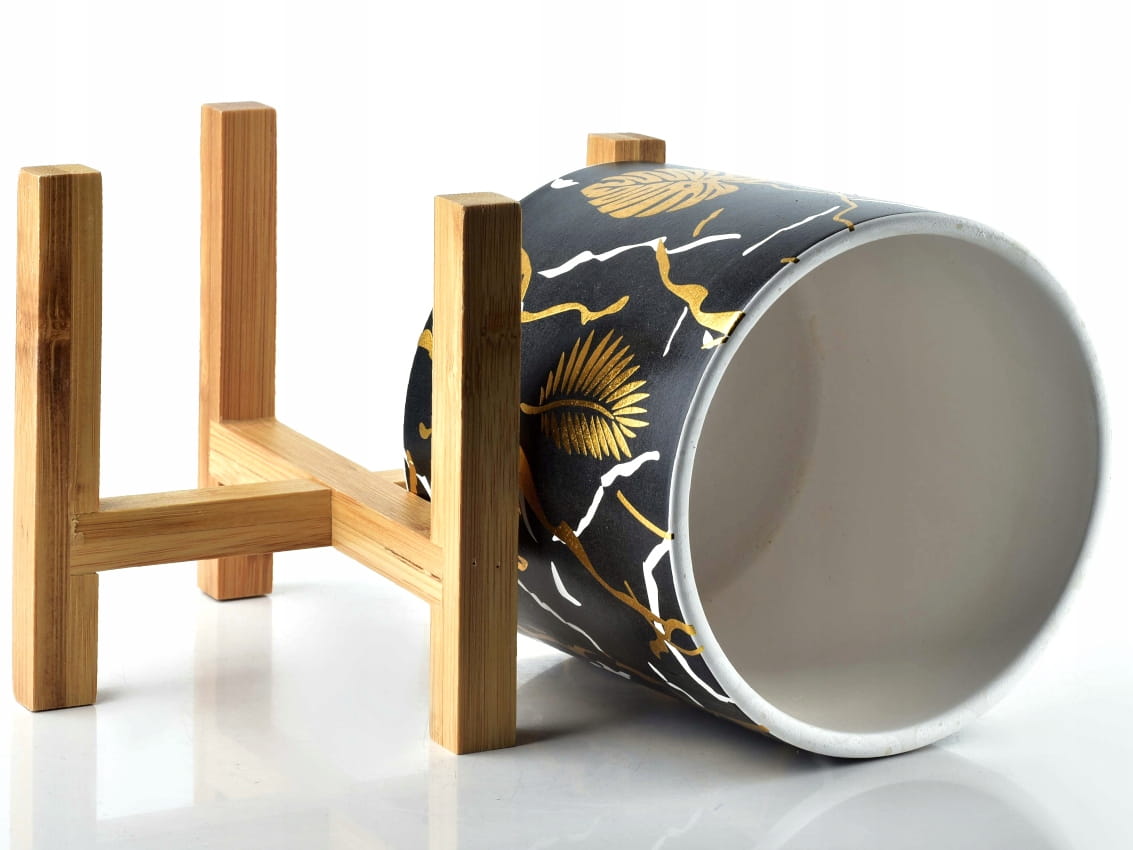 Kolekcja AVA - ceramiczna osłonka/doniczka, umieszczona na drewnianym stojaku.