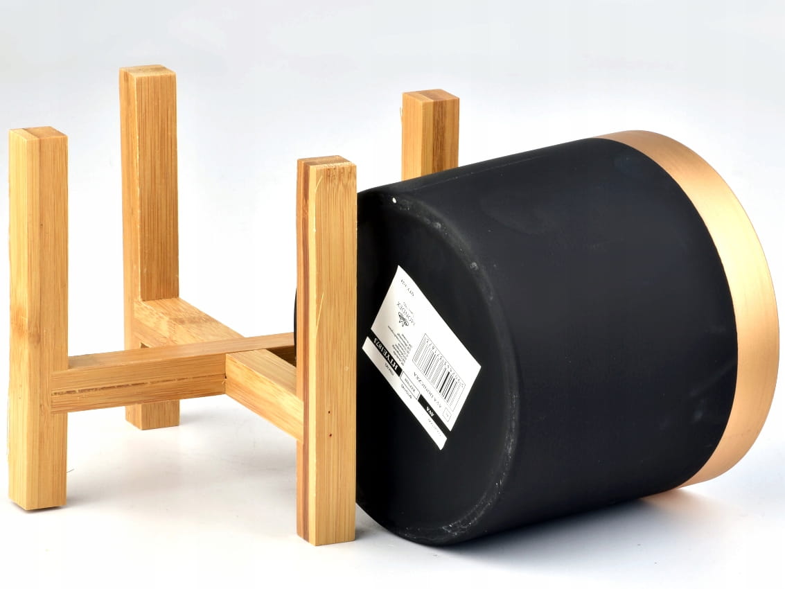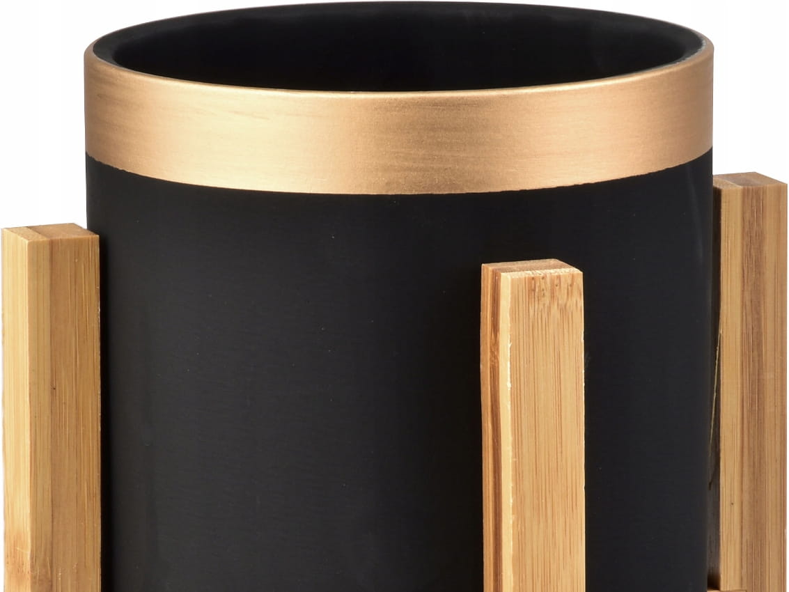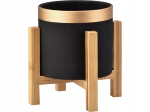Kolekcja AVA - ceramiczna osłonka/doniczka, umieszczona na drewnianym stojaku.