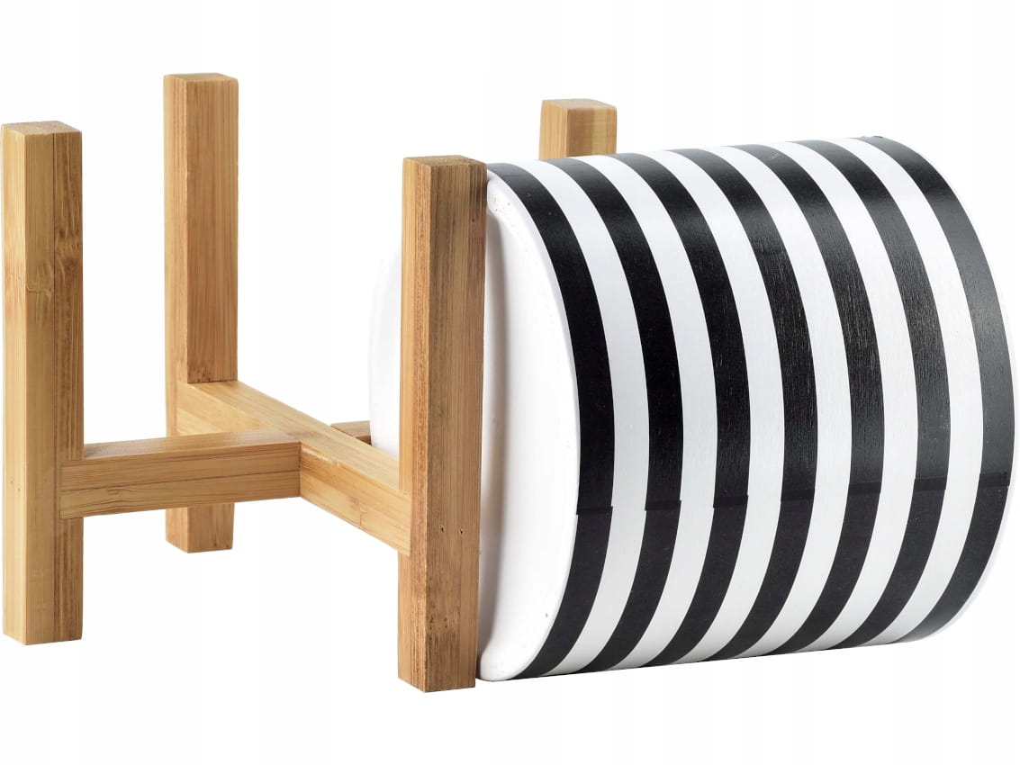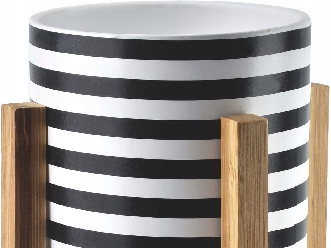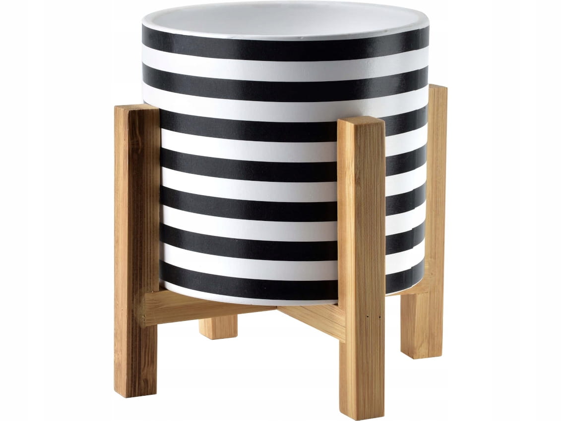 Kolekcja AVA - ceramiczna osłonka/doniczka, umieszczona na drewnianym stojaku.