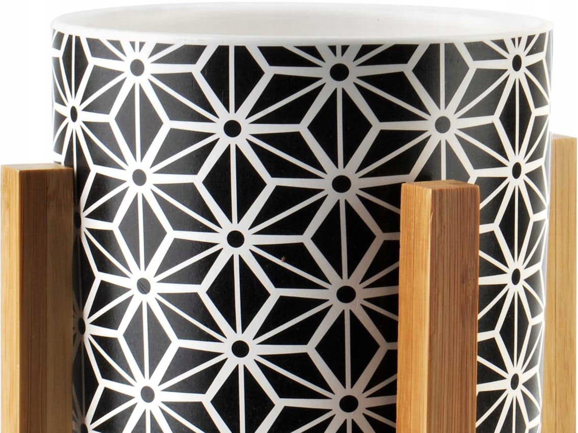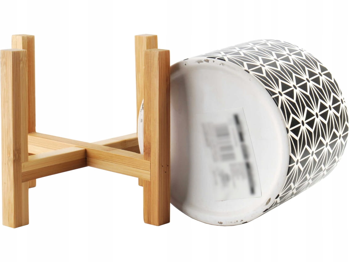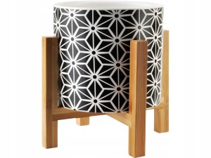 Kolekcja AVA - ceramiczna osłonka/doniczka, umieszczona na drewnianym stojaku.