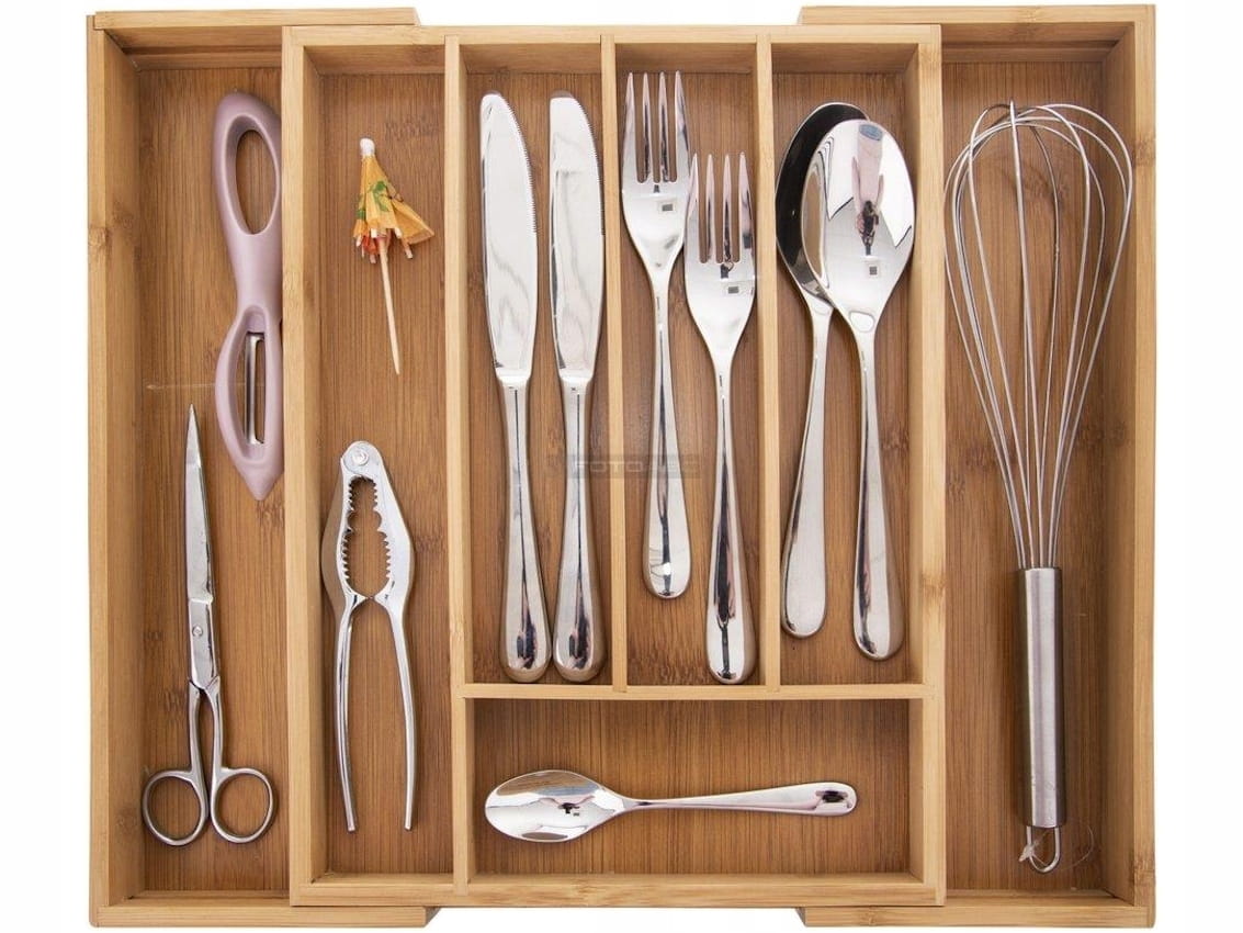 - Regulowany organizer do szuflady na sztućce i akcesoria kuchenne