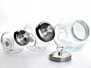 - Każdy słoik z metalową pokrywką ze szklanym uchwytem w kształcie diamentu
