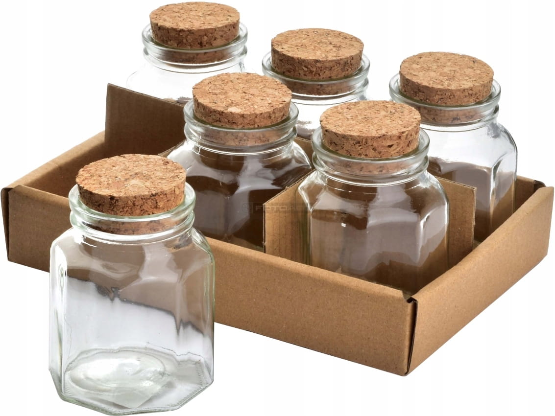 BASIC KITCHEN Ozdobny słoik 5,8 cm z korkiem 6 szt
