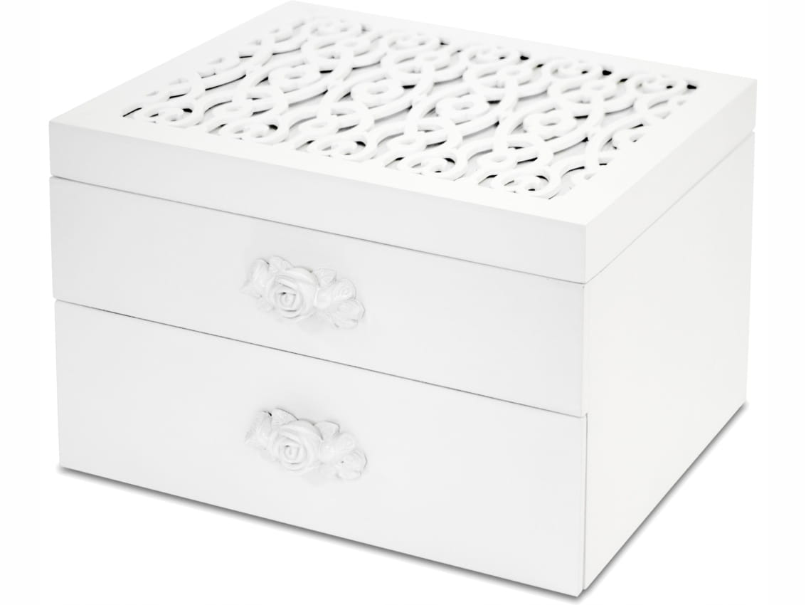116362 Drewniana Szkatułka na Biżuterię - biała