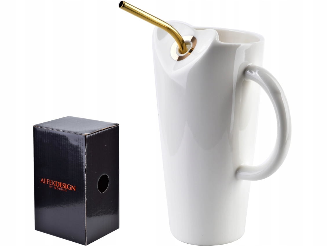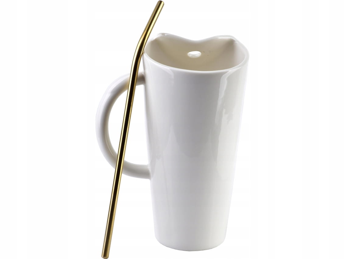 BIAŁY Kubek 480ml ze ZŁOTĄ słomką - do YERBA MATE