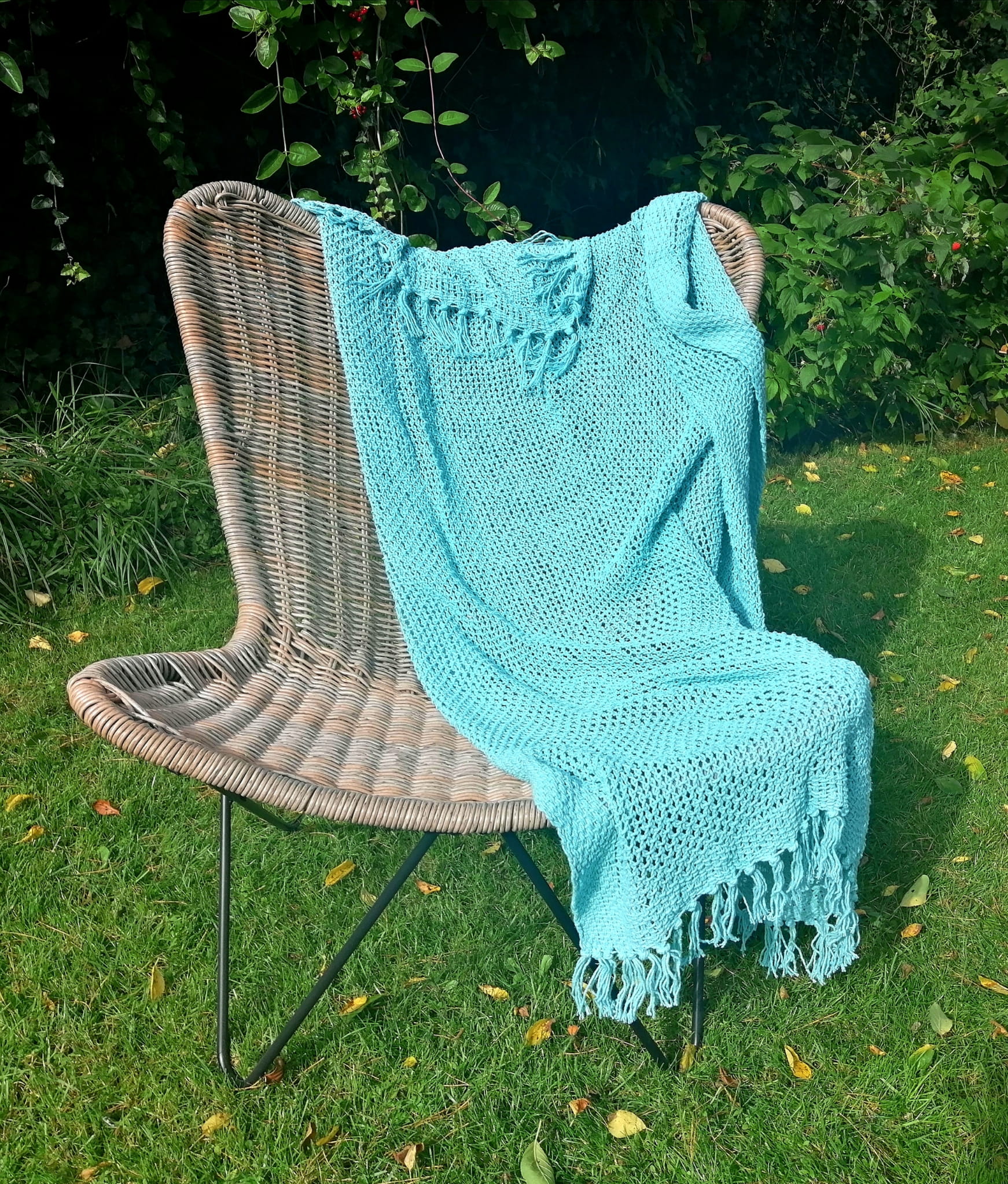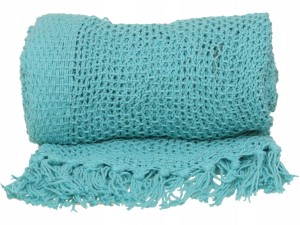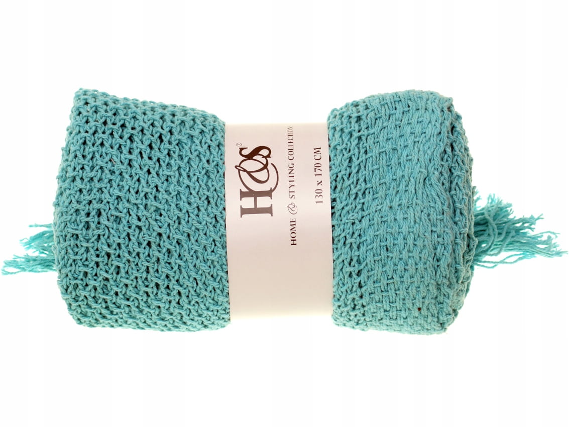 BOHO Koc Pled 130x170 cm BAWEŁNA Turkusowy