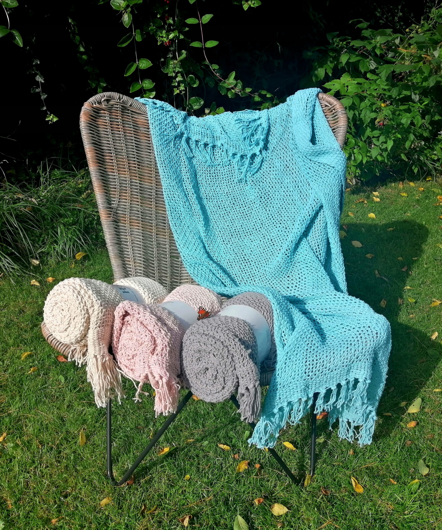 Miękki pled z frędzlami - w stylu skandynawskim.