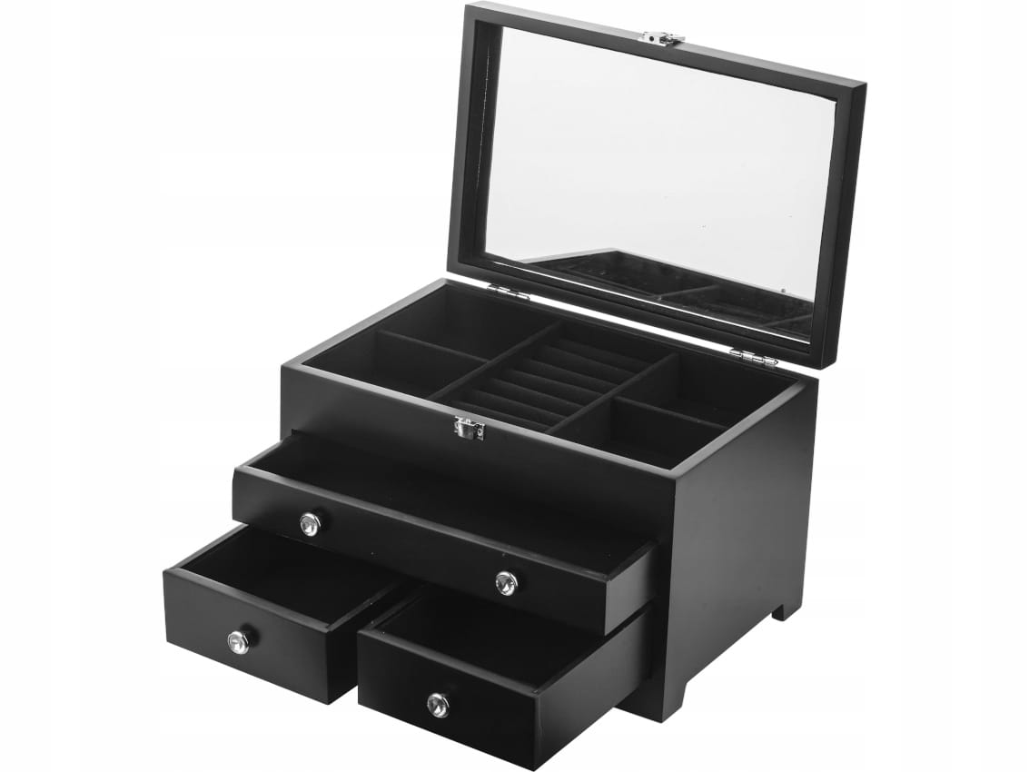 135917 Drewniana Szkatułka na Biżuterię - czarna
