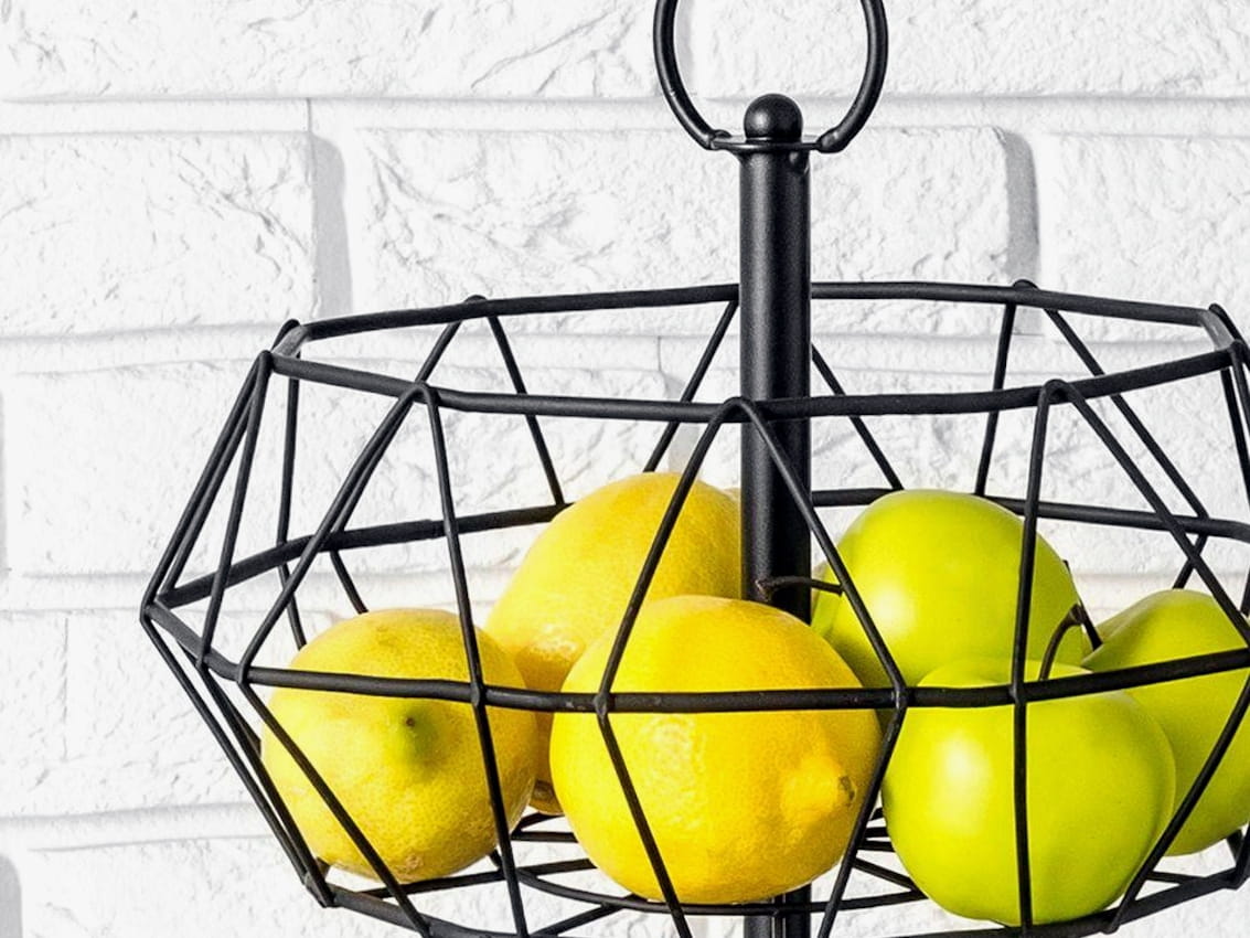 229005 Koszyk metalowy na owoce 2-poziomowy - czarny