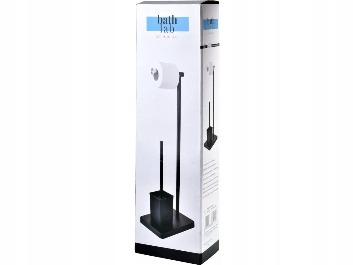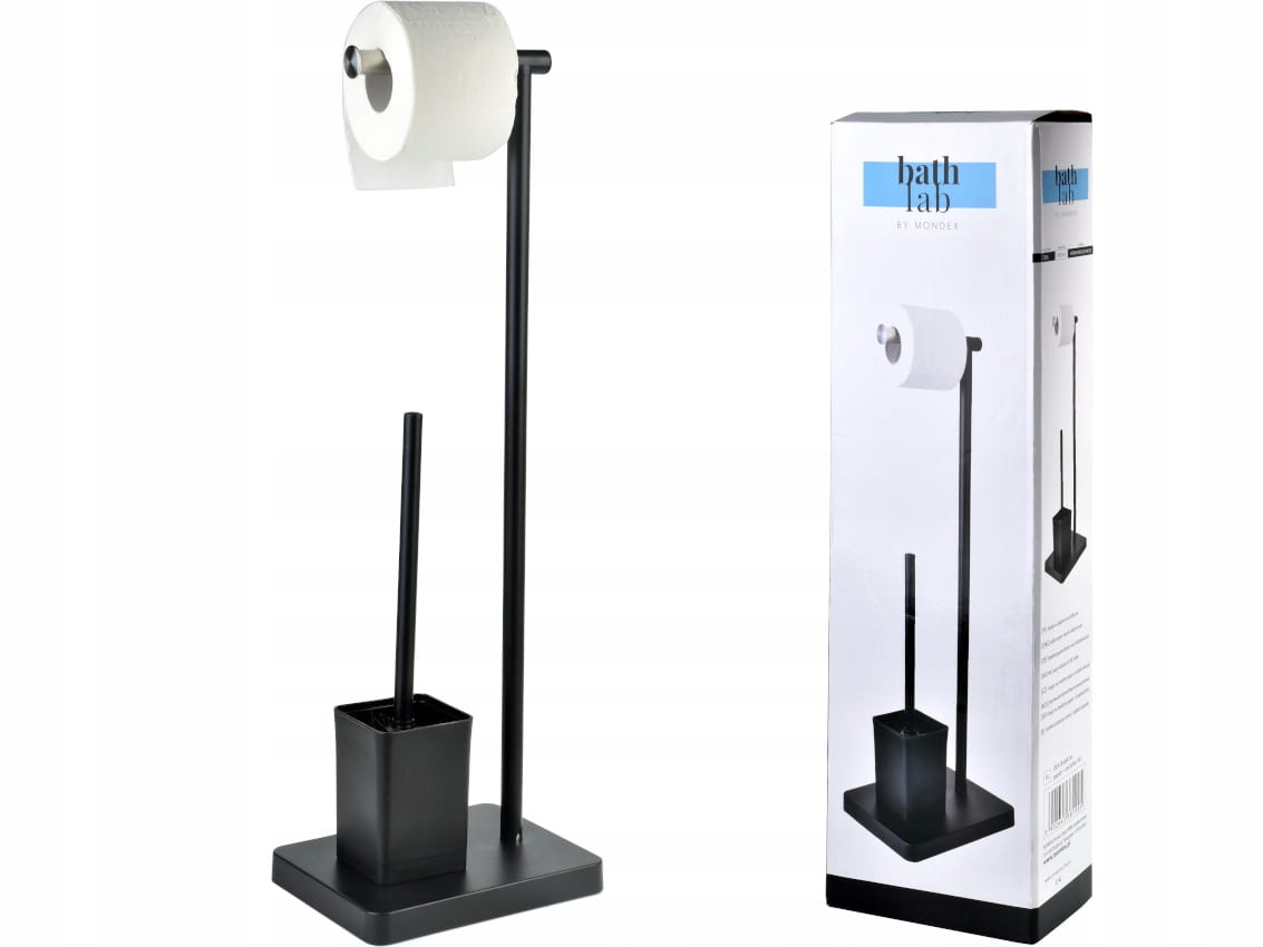 - Wolnostojący zestaw zawiera stojak na papier toaletowy oraz szczotkę do WC