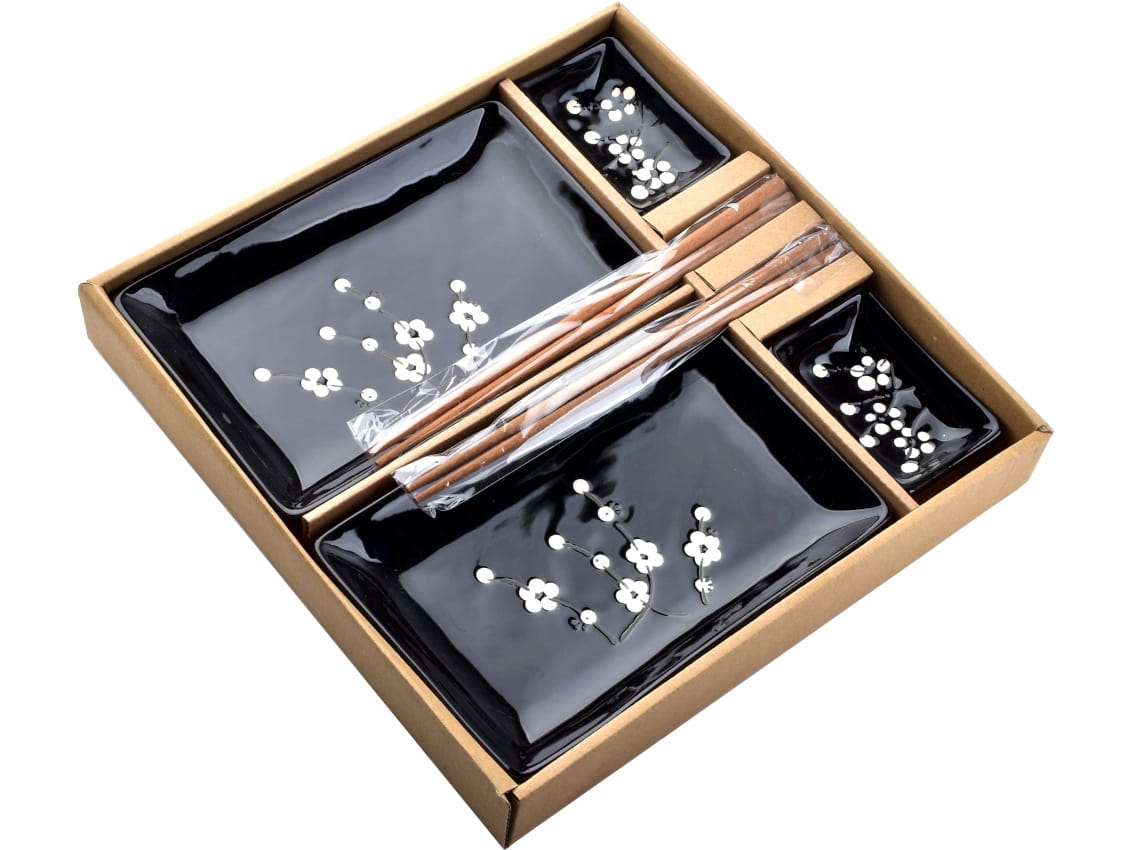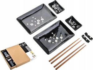 HTTC6601 Zestaw do sushi dla 2 osób czarny z kwiatami - 8 elementów