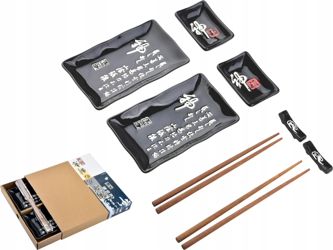 HTTC6618 Zestaw do sushi dla 2 osób czarny z literami - 8 elementów