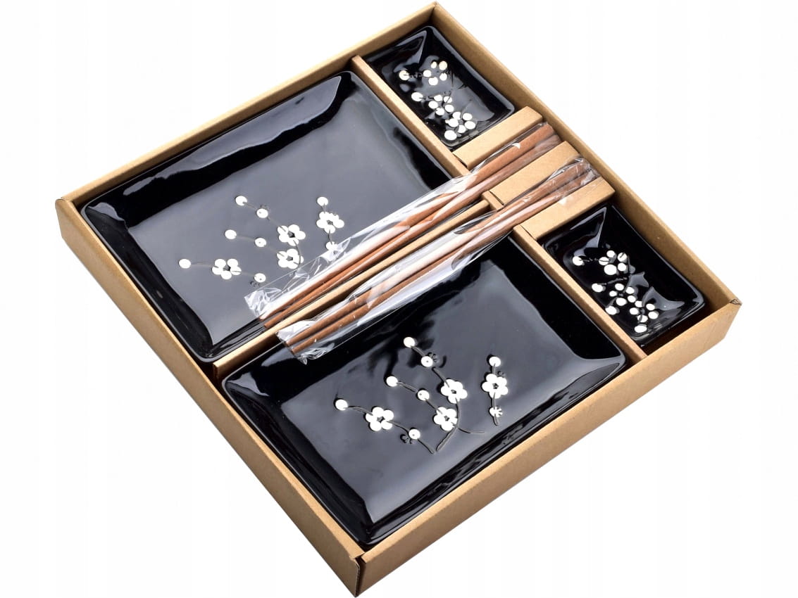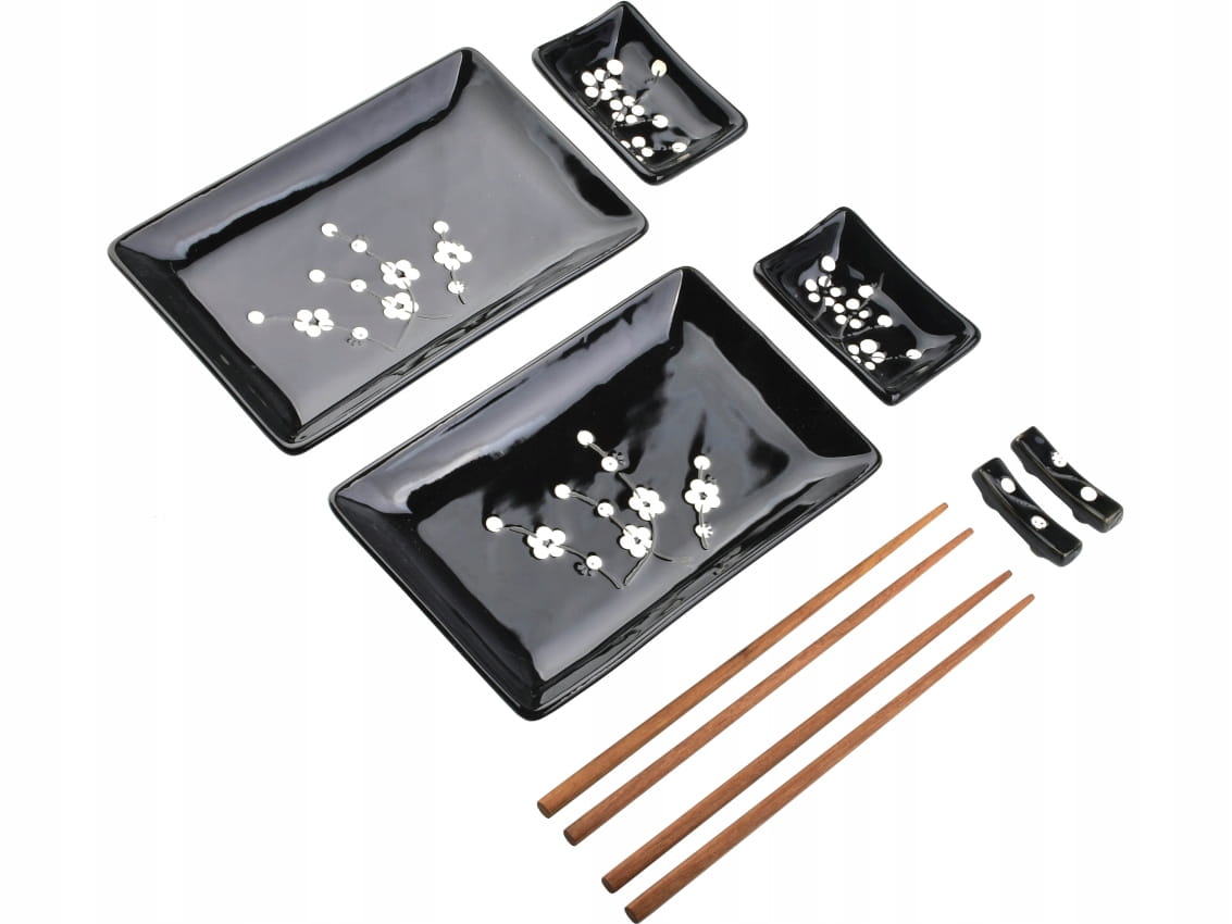 HTTC6601 Zestaw do sushi dla 2 osób czarny z kwiatami - 8 elementów