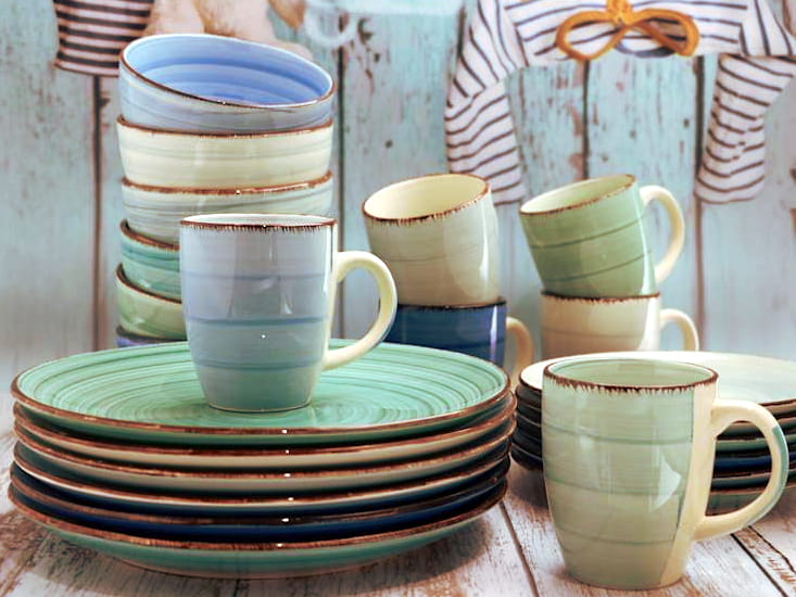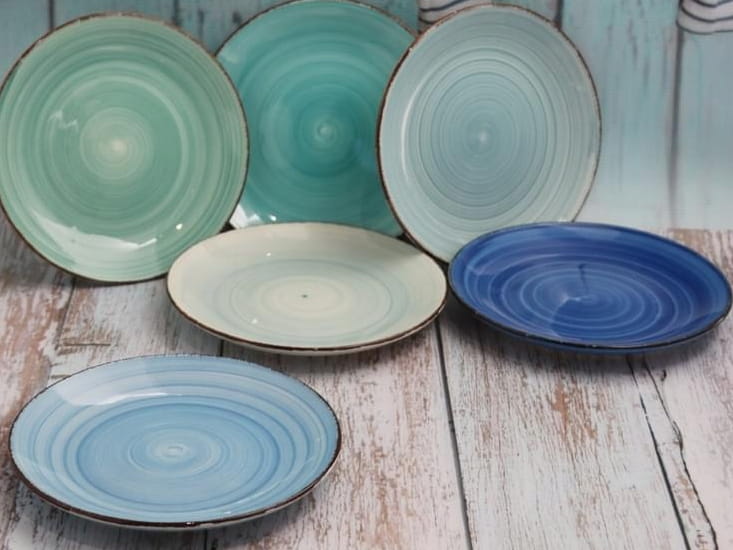 W każdym komplecie znajduje się sześć talerzy w różnych odcieniach.
