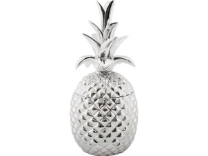 Figurka / pojemnik ANANAS - wykonany ze szlachetnej ceramiki w kolorze srebrnym. Pojemnik składa się korpusu oraz pokrywki.