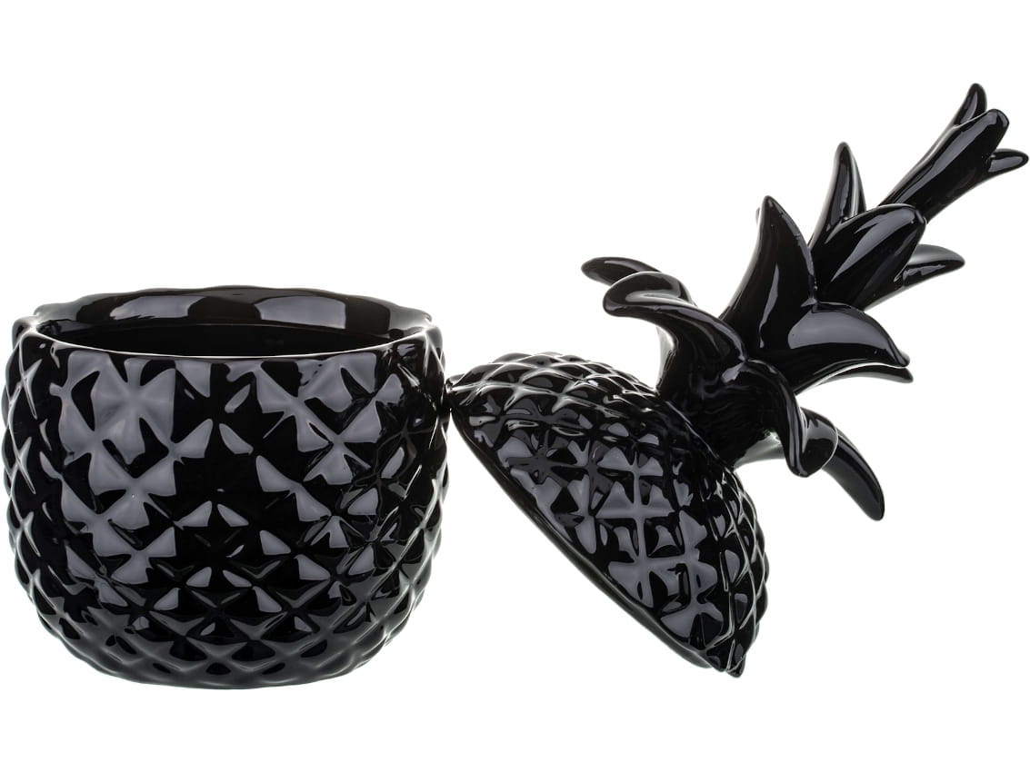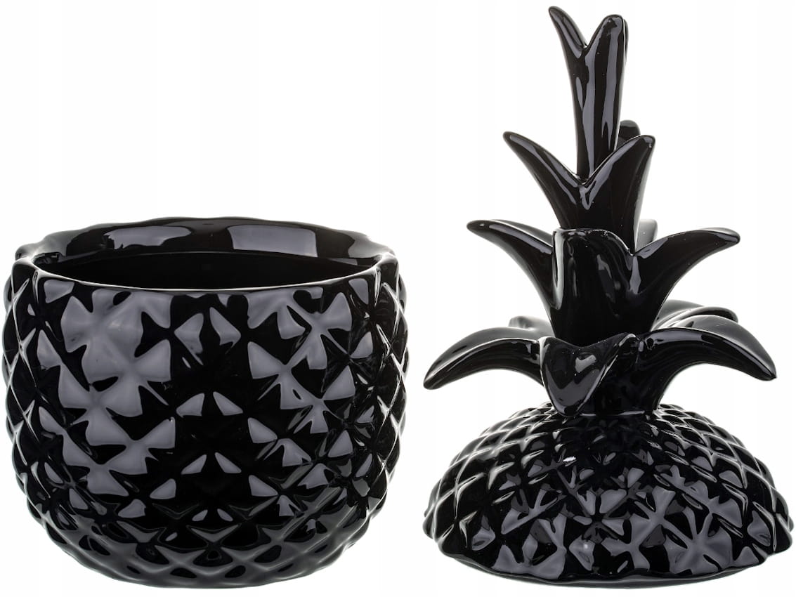 Figurka / pojemnik ANANAS - wykonany ze szlachetnej ceramiki w kolorze czarnym. Pojemnik składa się korpusu oraz pokrywki.