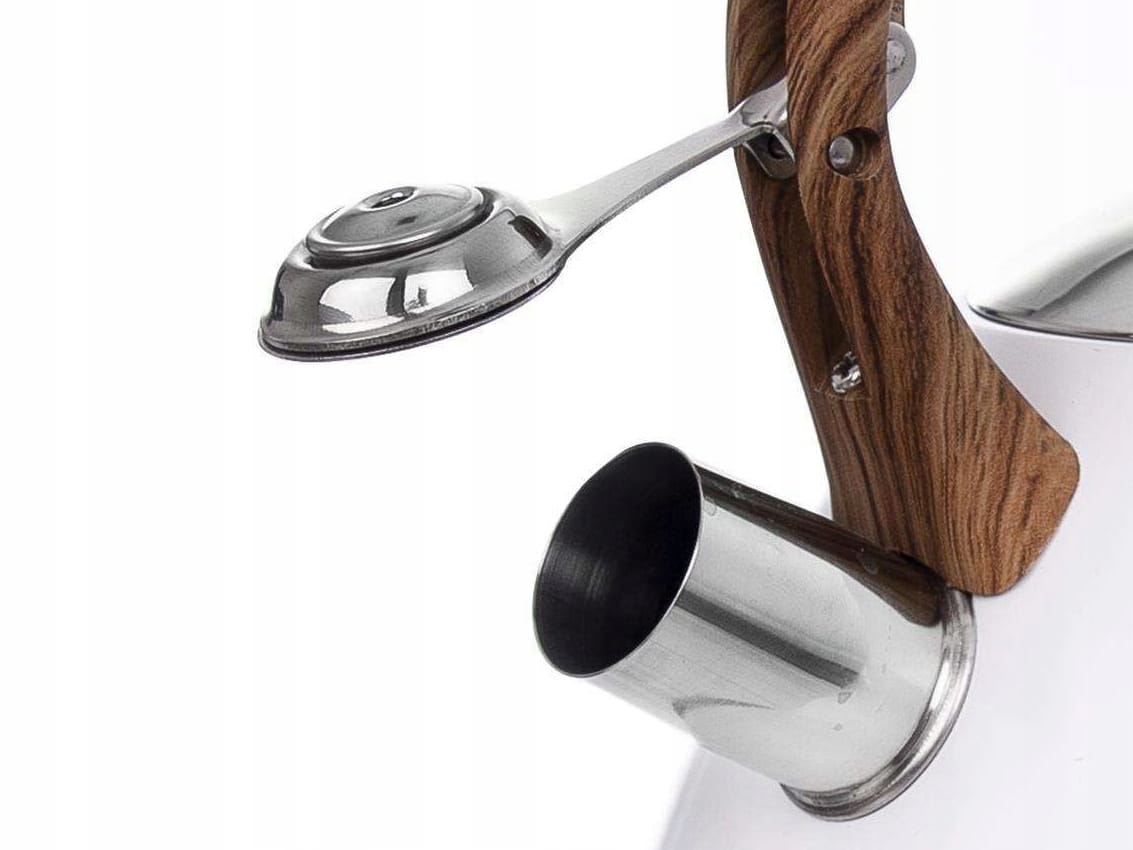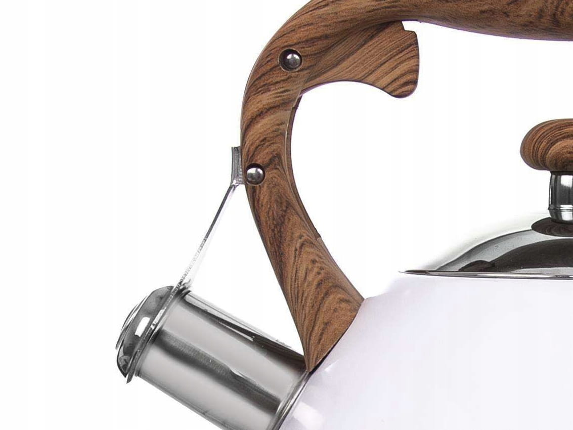 Czajnik z gwizdkiem, wykonany z wysokiej jakości stali nierdzewnej, z drewnopodobną rączką soft touch.