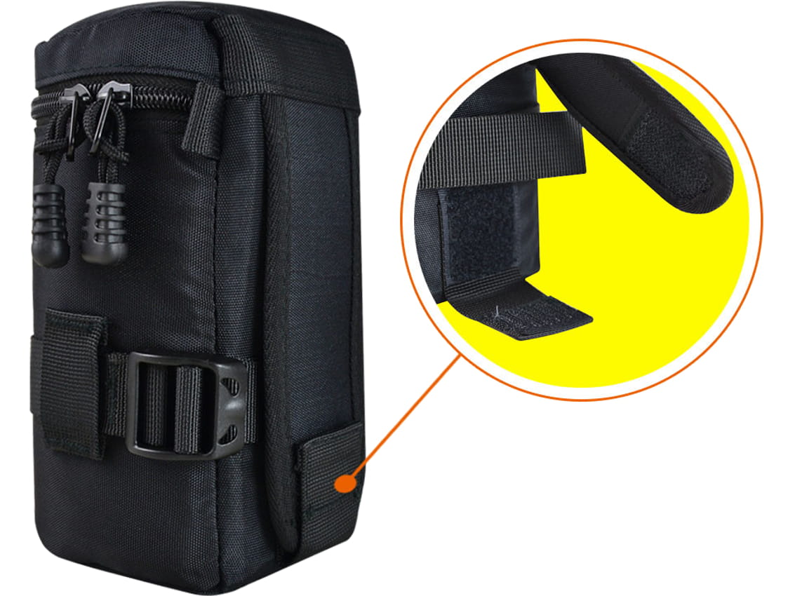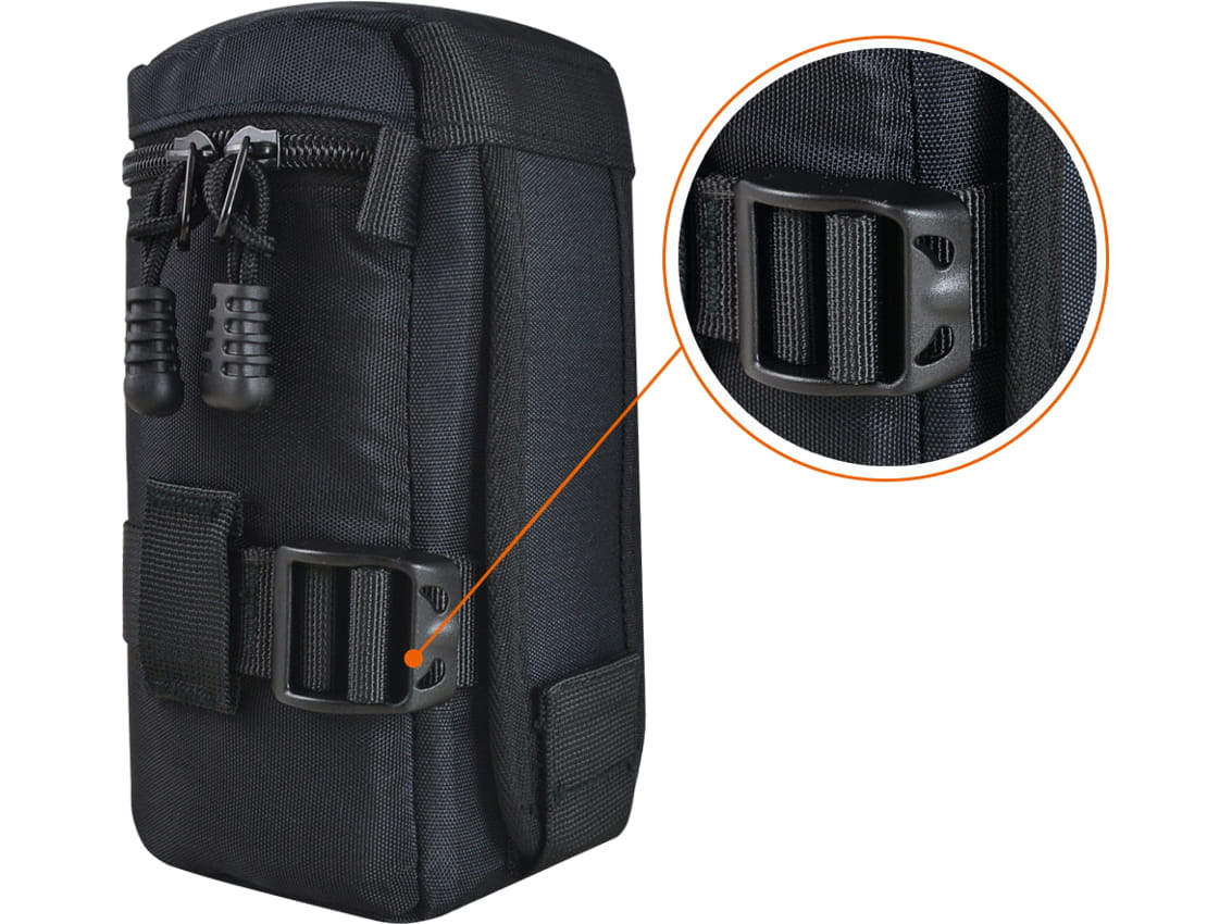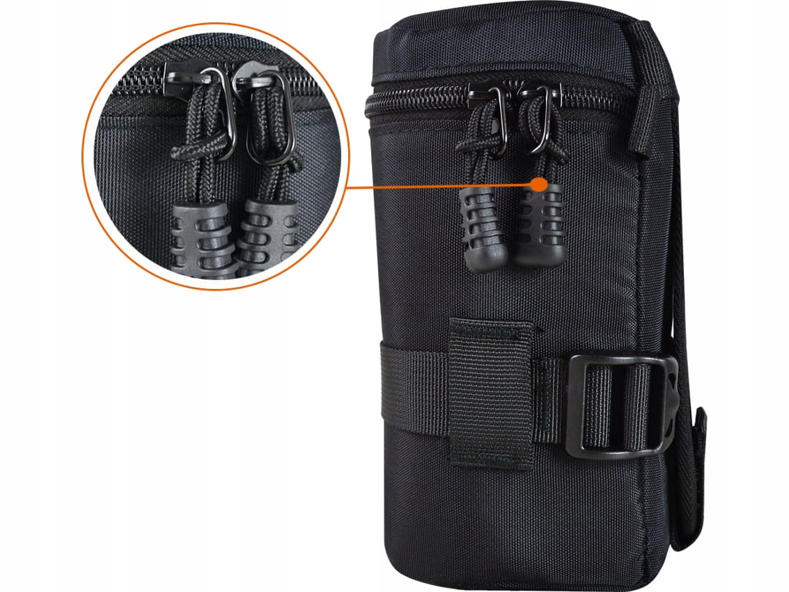 Bezpieczeństwo: pasek o regulowanej długości zabezpiecza obiektyw przed przemieszczaniem się wewnątrz pokrowca.