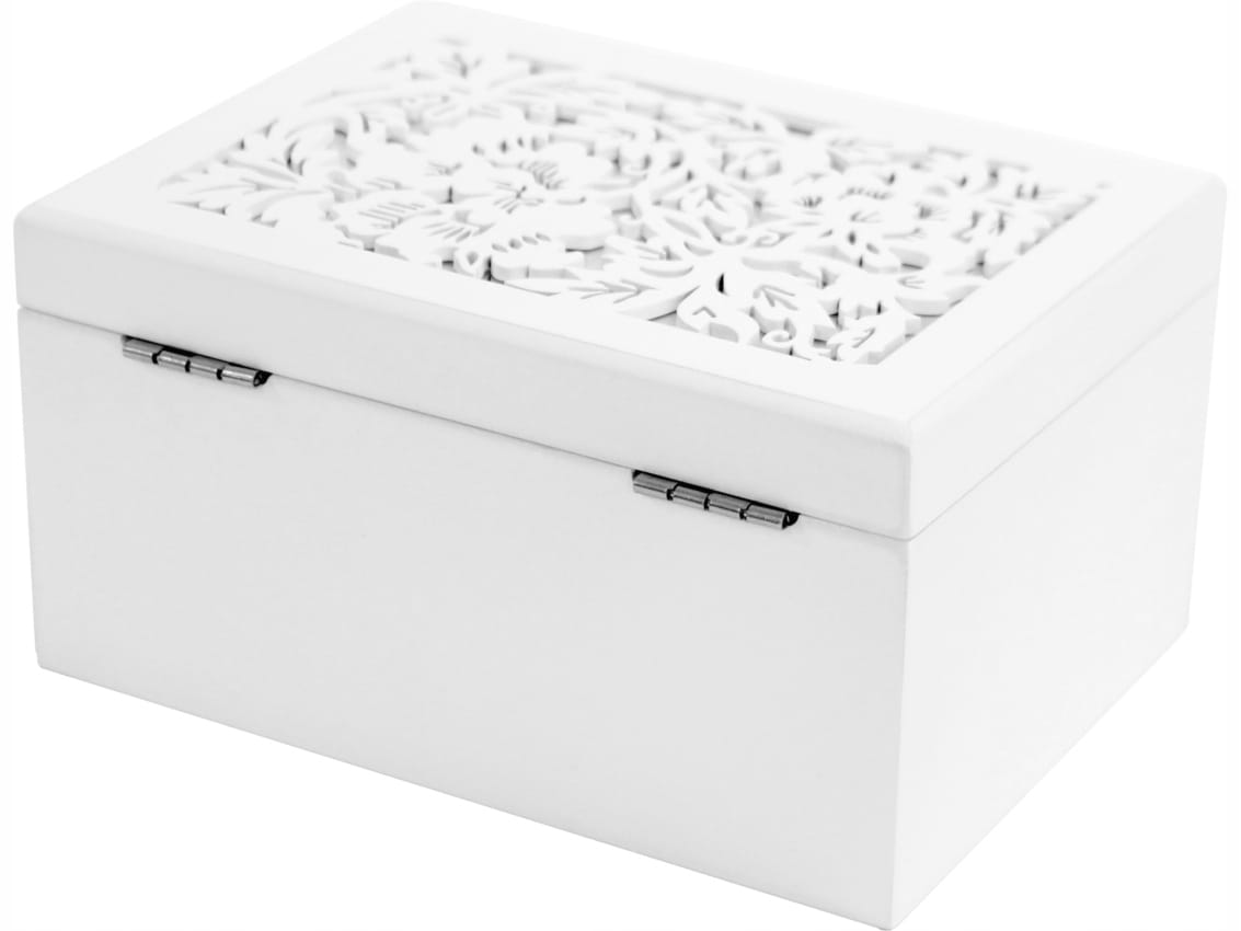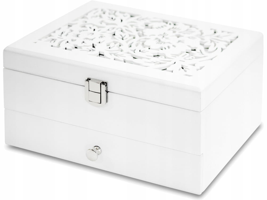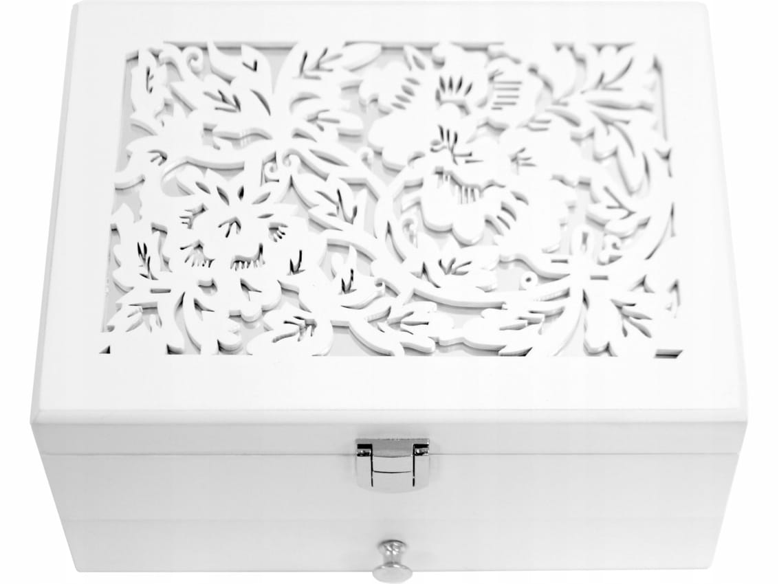 116366 Drewniana Szkatułka na Biżuterię - biała