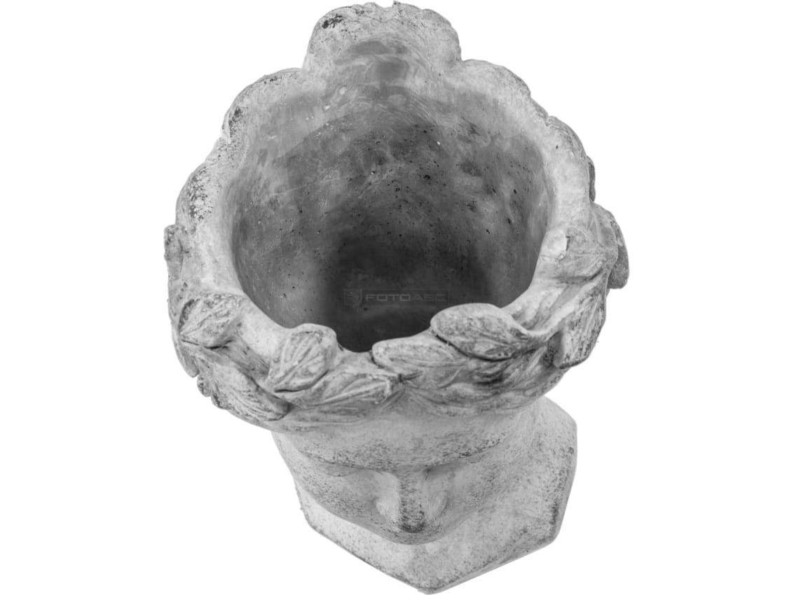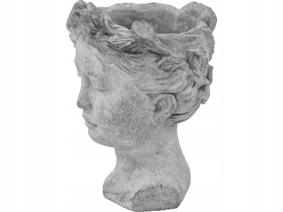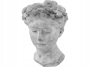 Cementowa doniczka, osłonka w kształcie głowy.