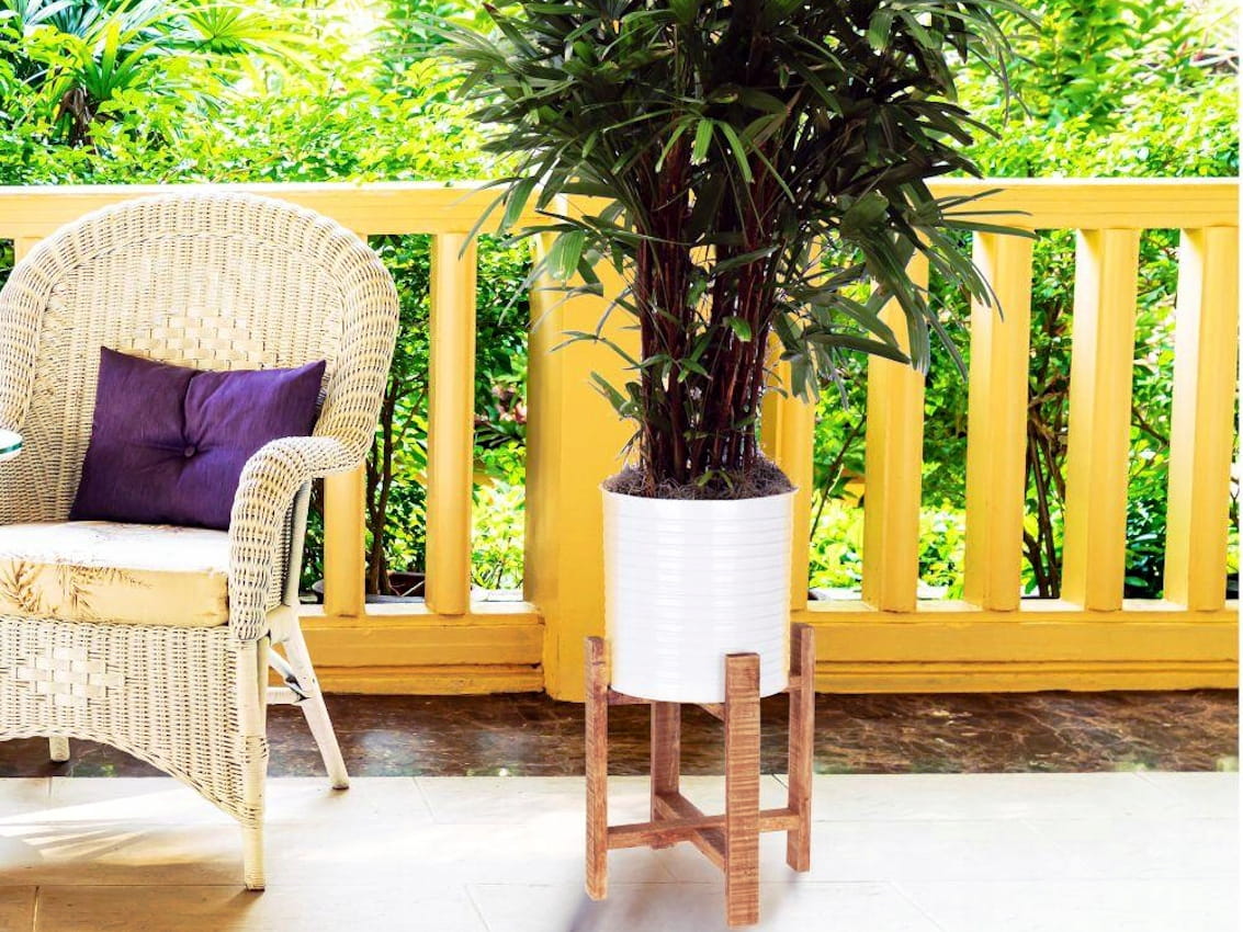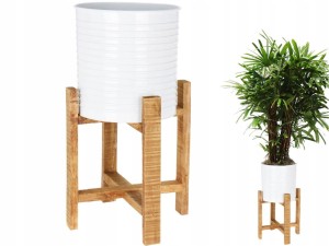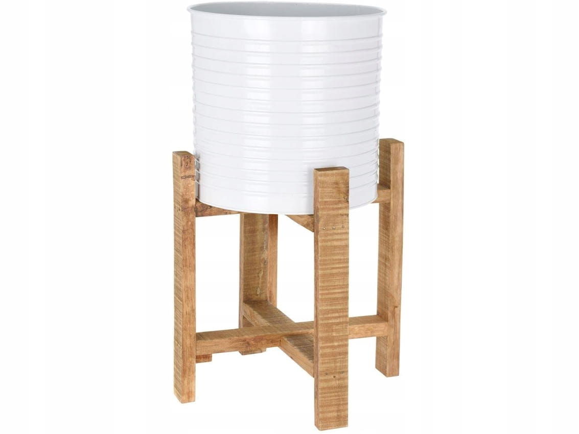 - Kwietnik w formie metalowej donicy na drewnianym stojaku