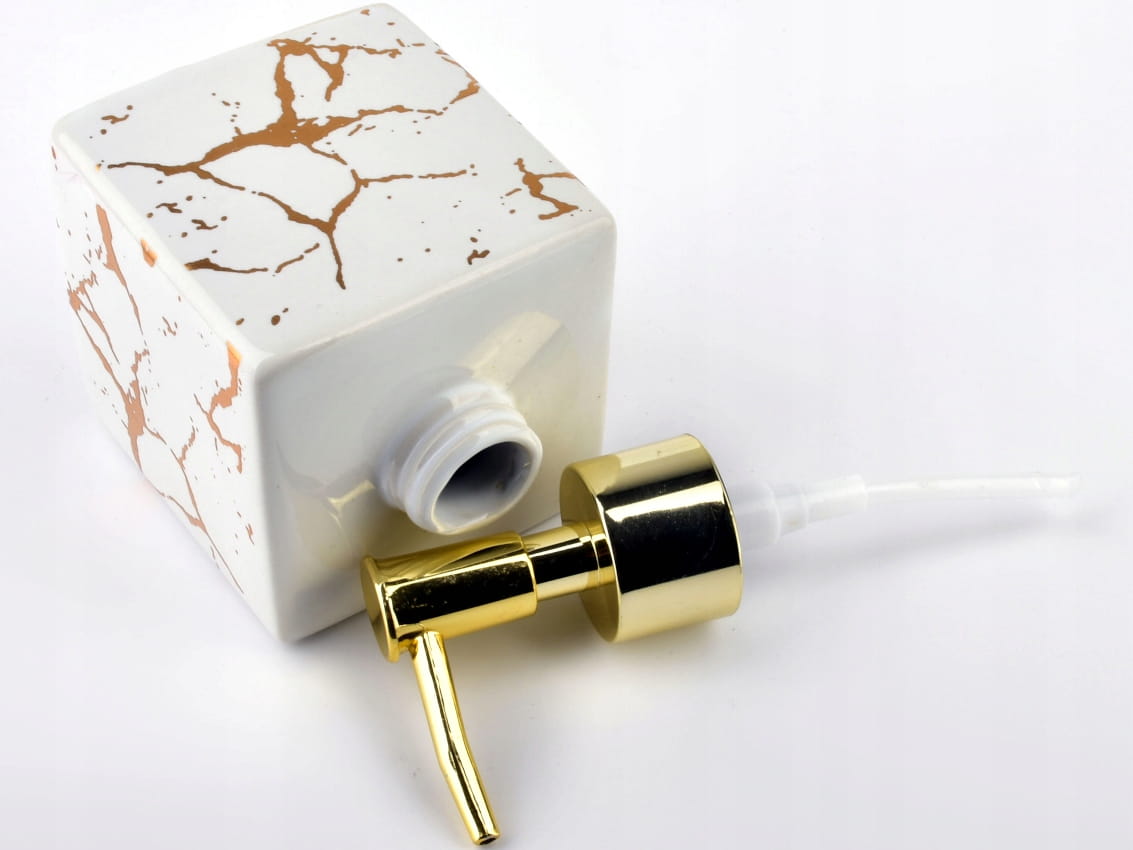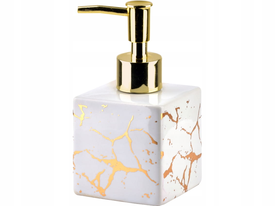 - Połączenie złotego "marmurowego" nadruku na białym tle, ze złotą pompką sprawi, że każda kuchnia lub łazienka nabierze klasy i uroku