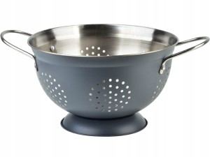 Kuchenny durszlak/cedzak wykonany ze stali nierdzewnej.