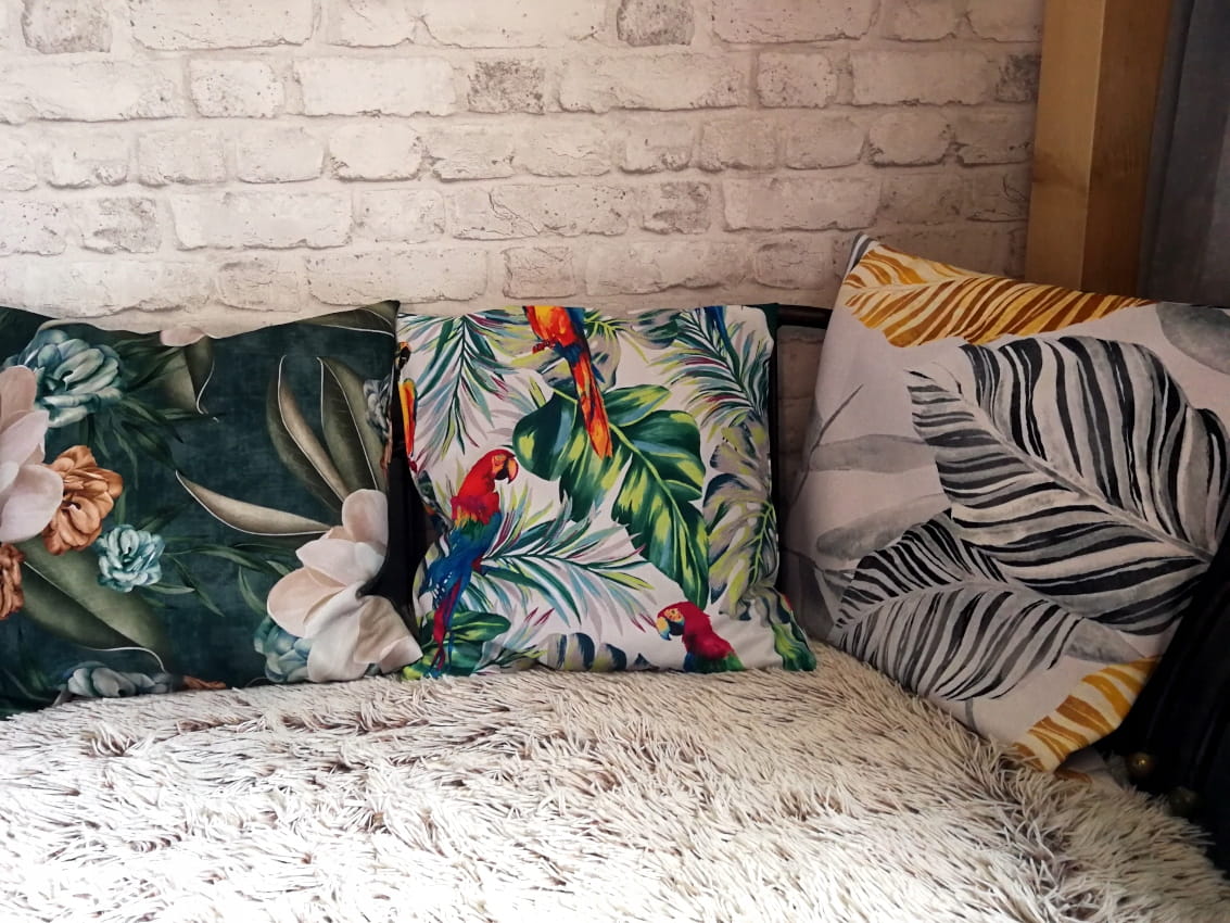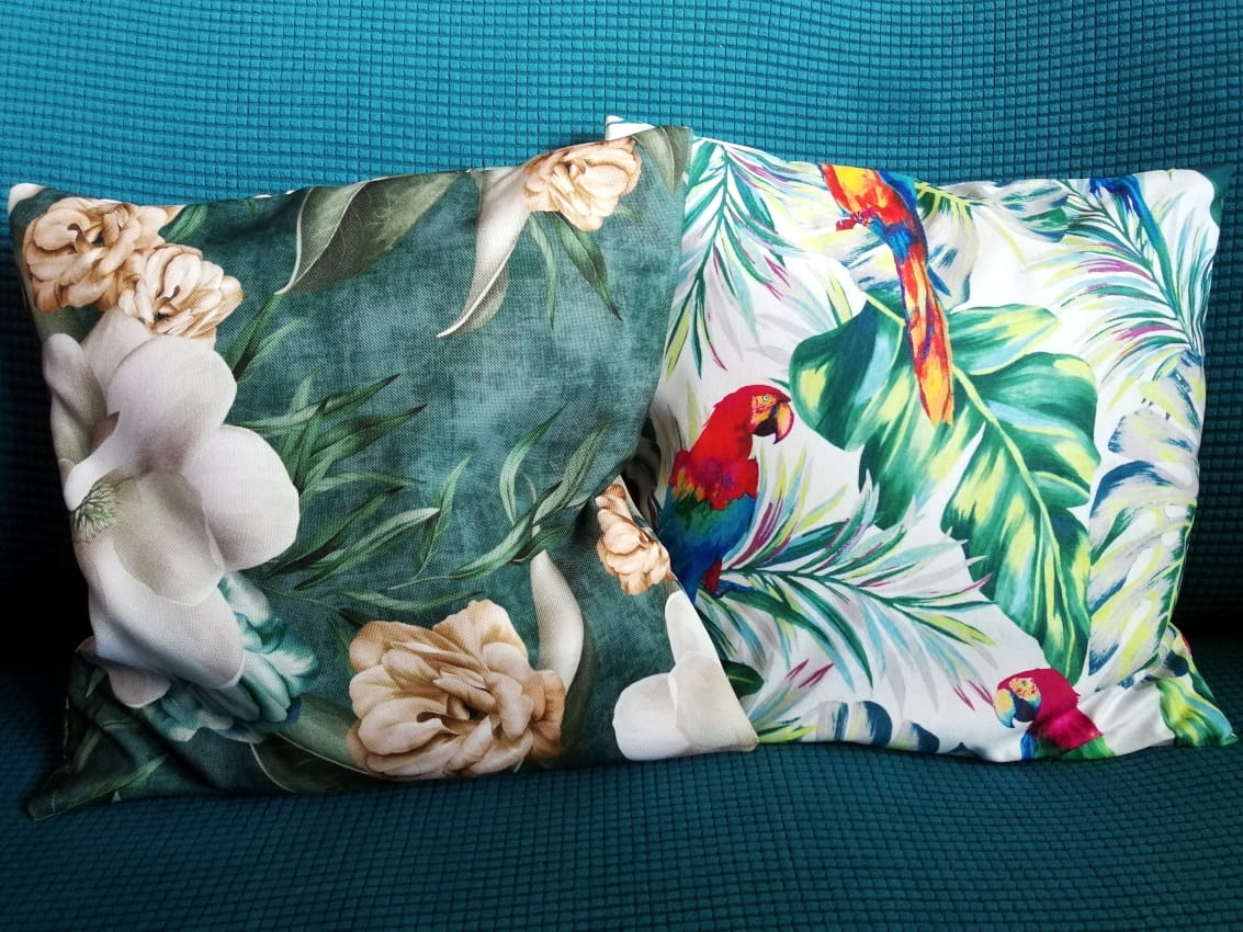 Poszewki są szyte ze wzorzystej tkaniny, więc mogą się różnić ułożeniem wzoru.