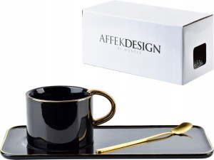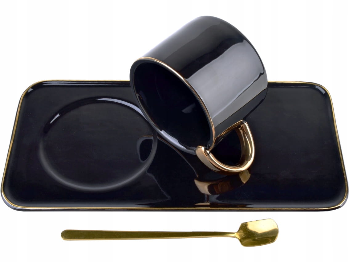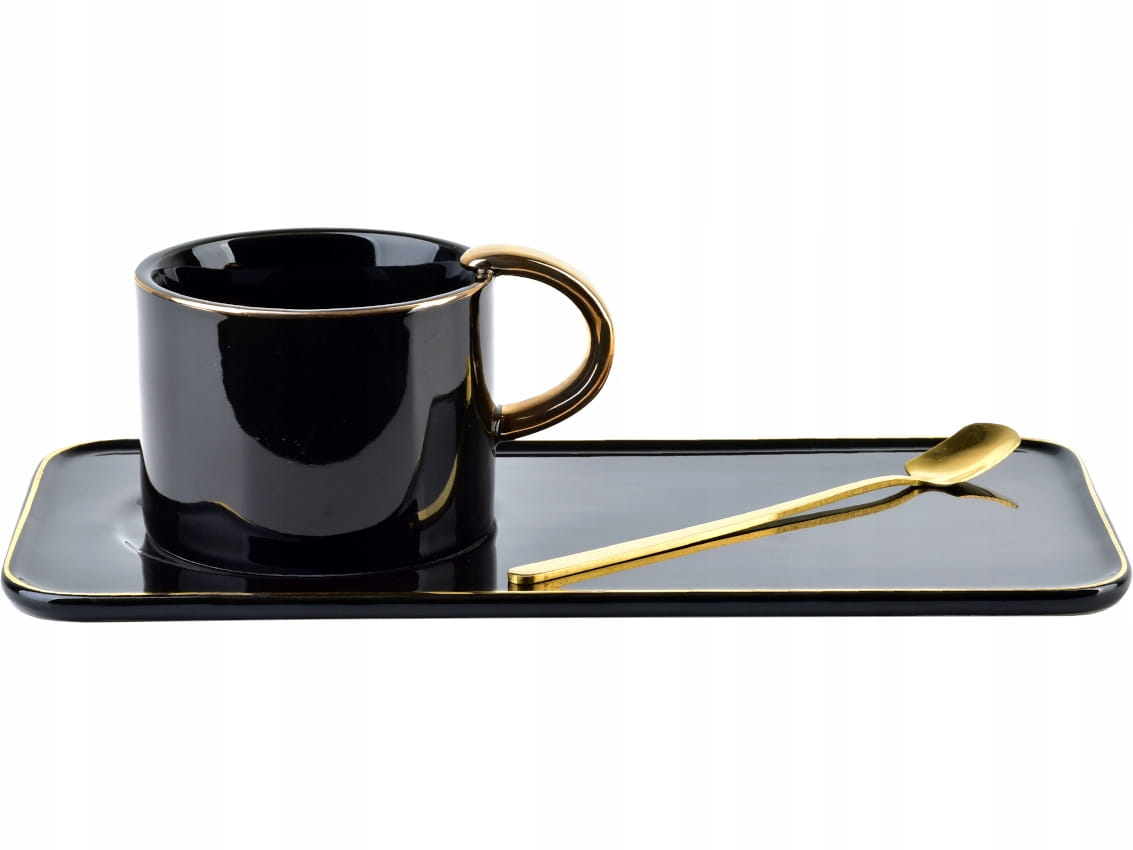 Filiżanka 200 ml + Spodek i Łyżeczka CZARNA ZŁOTA