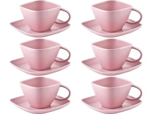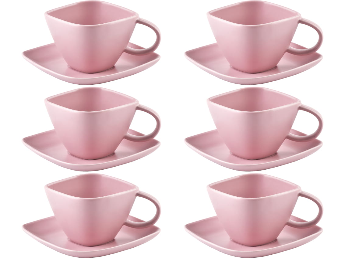 Filiżanka DO KAWY HERBATY ze spodkiem 6 szt RÓŻOWA