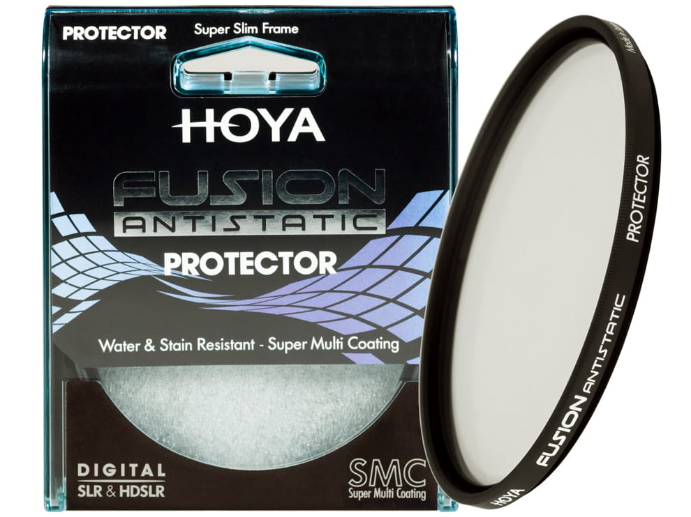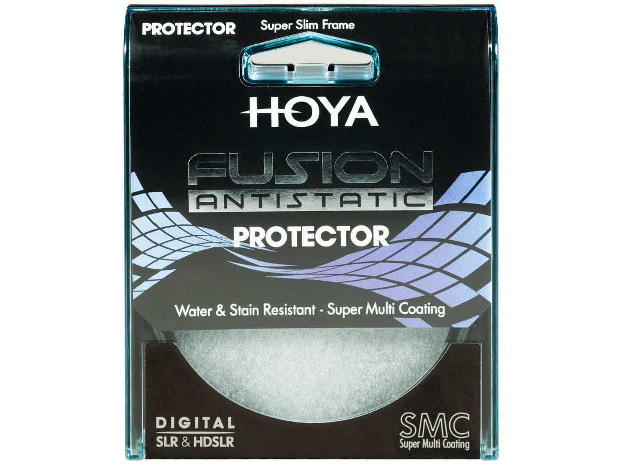 Najwyższej jakości filtr ochronny Protector Fusion Antistatic - japońskiej firmy Hoya - jest efektem połączenia funkcjonalności linii Pro1 Digital oraz nowej technologii powłok antystatycznych. Przeznaczona jest do pracy w niesprzyjających warunkach atmosferycznych i w środowisku o wysokim stopniu zakurzenia i zapylenia. Ma unikatową cechę wyróżniającą ją spośród wszystkich filtrów dostępnych na rynku – antystatyczną powłokę ochronną ANTISTATIC, która stanowi naturalną barierę chroniącą powierzchnię filtra przed kroplami wody, kurzem, drobnymi pyłkami czy odciskami palców. Dzięki niej utrzymanie filtra w czystości jest znacznie prostsze i nie wymaga stosowania dodatkowych środków do konserwacji optyki. Powłoka ANTISTATIC jest odporna na działanie wody, zaplamienia i tłuste zabrudzenia, których usunięcie z powierzchni innych filtra może być kłopotliwe. Zastosowana powłoka jest optycznie neutralna, zarówno pod względem barwnym jak i w pracy pod światło. Stanowi tym samym niewidoczną dla oka i aparatu barierę, chroniącą powłoki antyrefleksyjne zastosowane w filtrze.