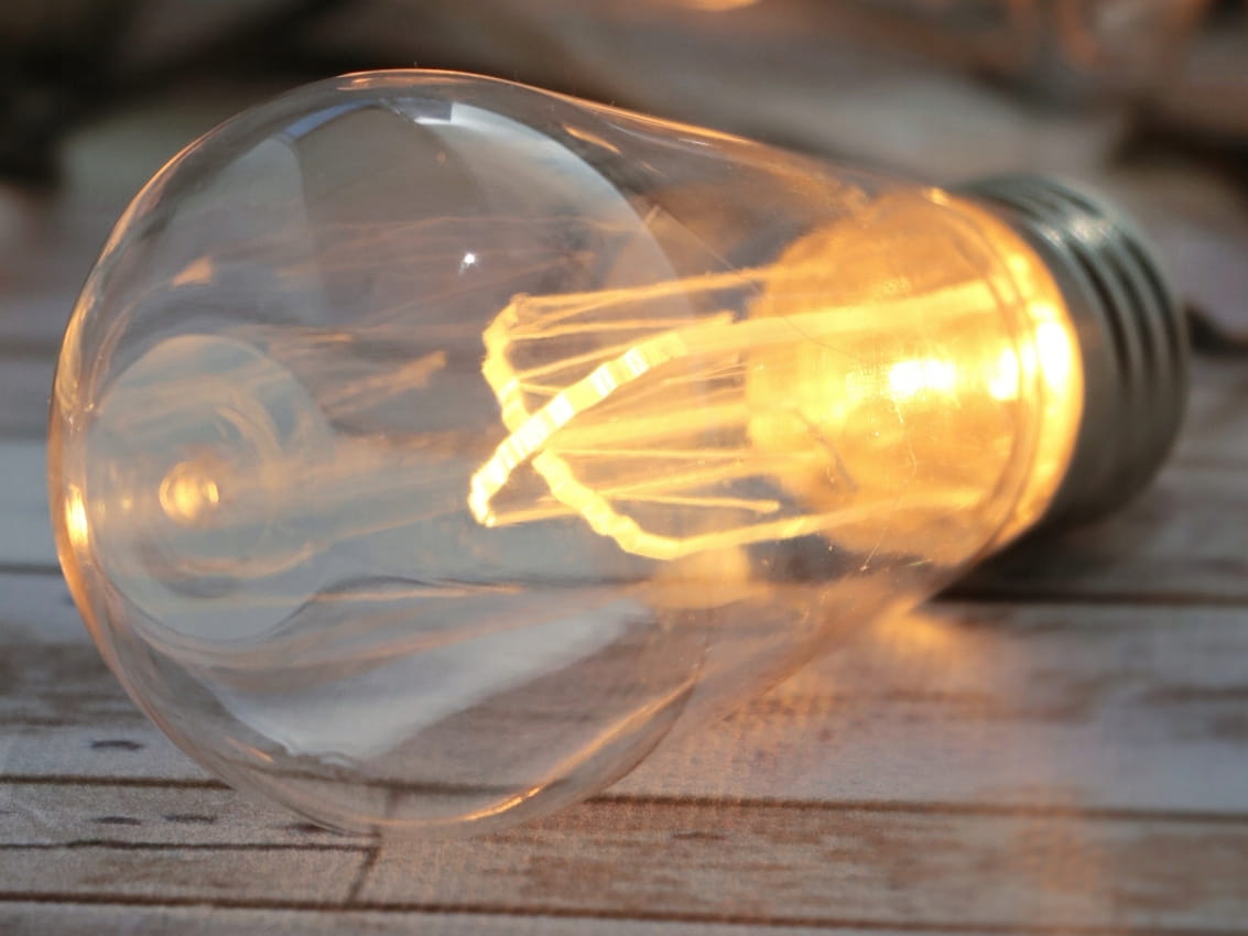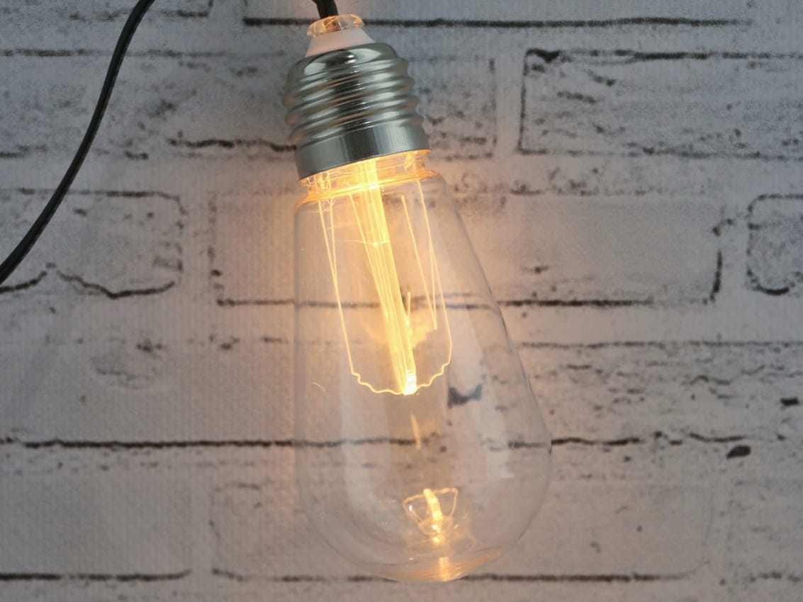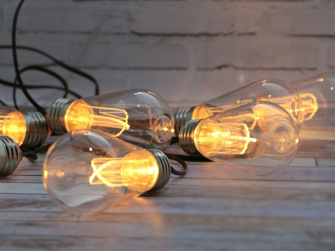 Girlanda z 10 żarówkami, wypełnionymi plastikowymi elementami w kształcie żarnika w żarówce Edisona, które pięknie oddają światło LED o ciepłej barwie.