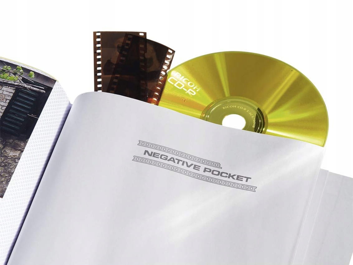 Album do zdjęć z wygodnymi kieszonkami i miejscem na opis - mieści 200 zdjęć formatu 10x15 cm w układzie dwóch zdjęć na stronie. Paski z opisem są umieszczone pomiędzy zdjęciami. Na końcu albumu jest miejsce na CD i negatywy.