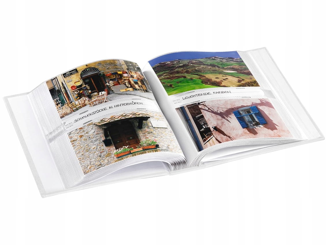 Album do zdjęć z wygodnymi kieszonkami i miejscem na opis - mieści 200 zdjęć formatu 10x15 cm w układzie dwóch zdjęć na stronie. Paski z opisem są umieszczone pomiędzy zdjęciami. Na końcu albumu jest miejsce na CD i negatywy.