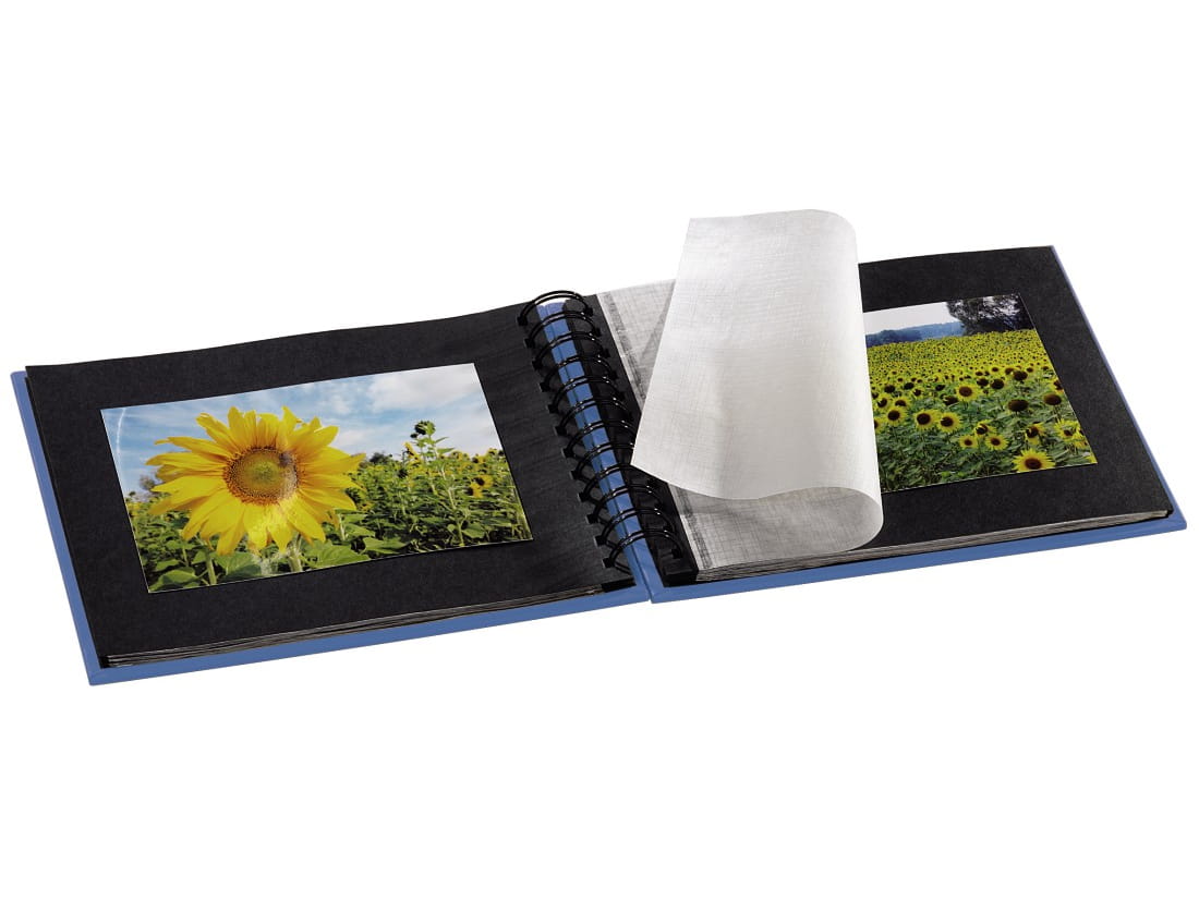 Album spiralny z czarnymi stronami z kartonu oraz pergaminowymi przekładkami.