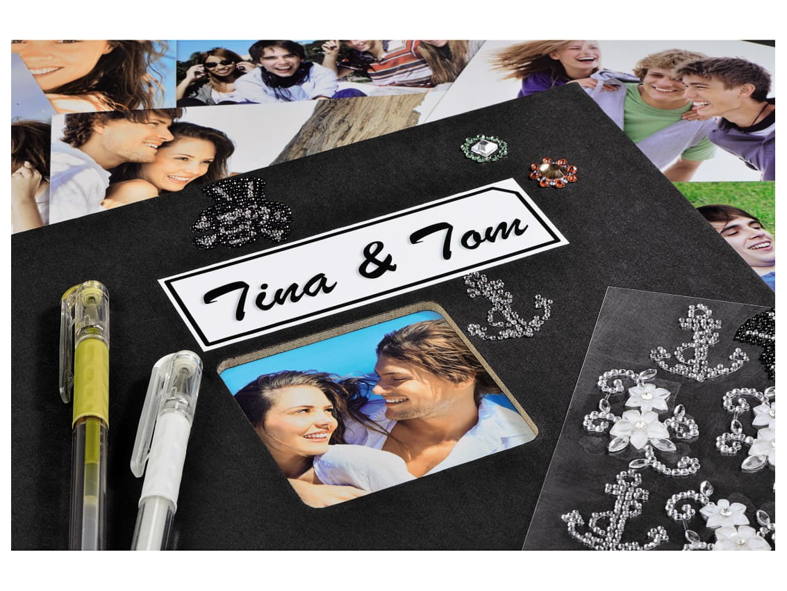 - Kartki wykonano z czarnego, pogrubionego kartonu z dużą ilością miejsca na indywidualną aranżację zdjęć