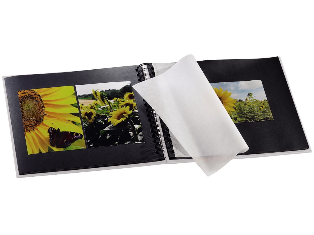 Album do wklejania zdjęć, ze stronami z kartonu oraz pergaminowymi przekładkami.