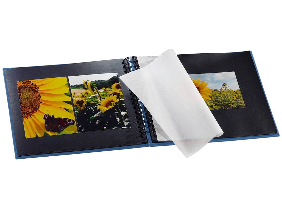 Album spiralny z czarnymi stronami z kartonu oraz pergaminowymi przekładkami.