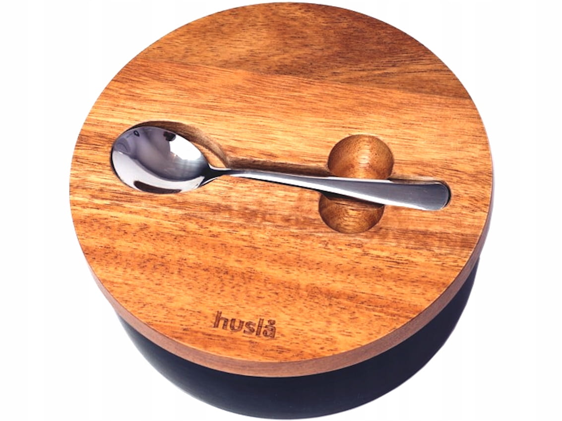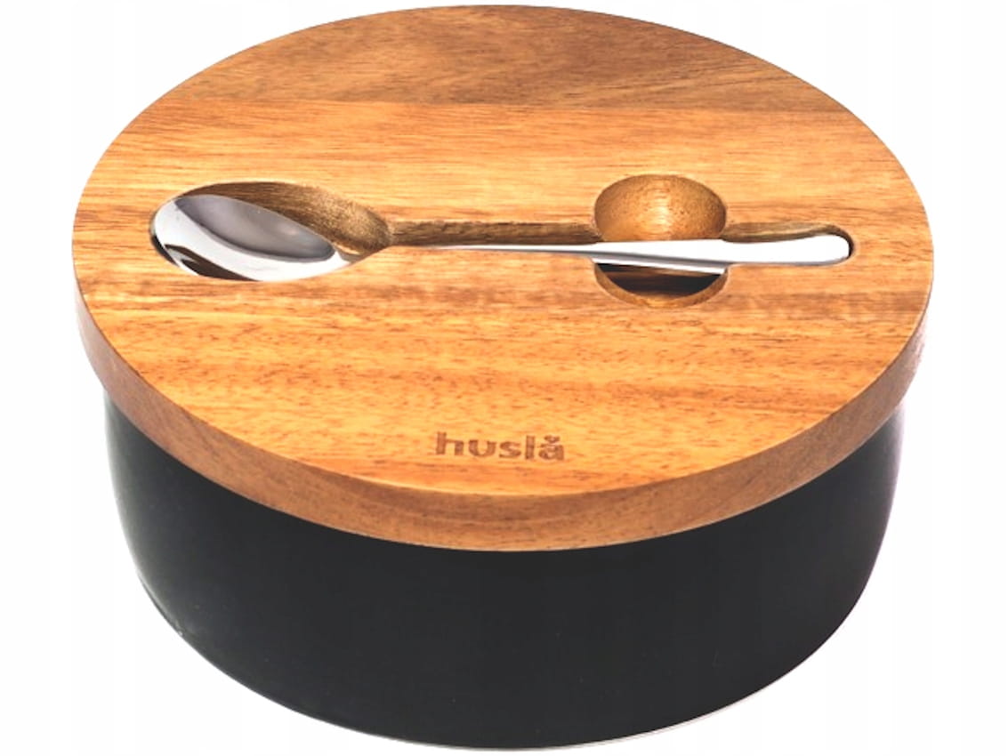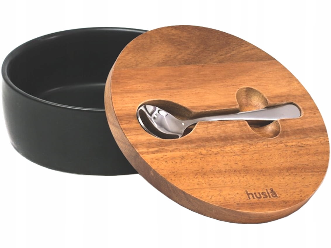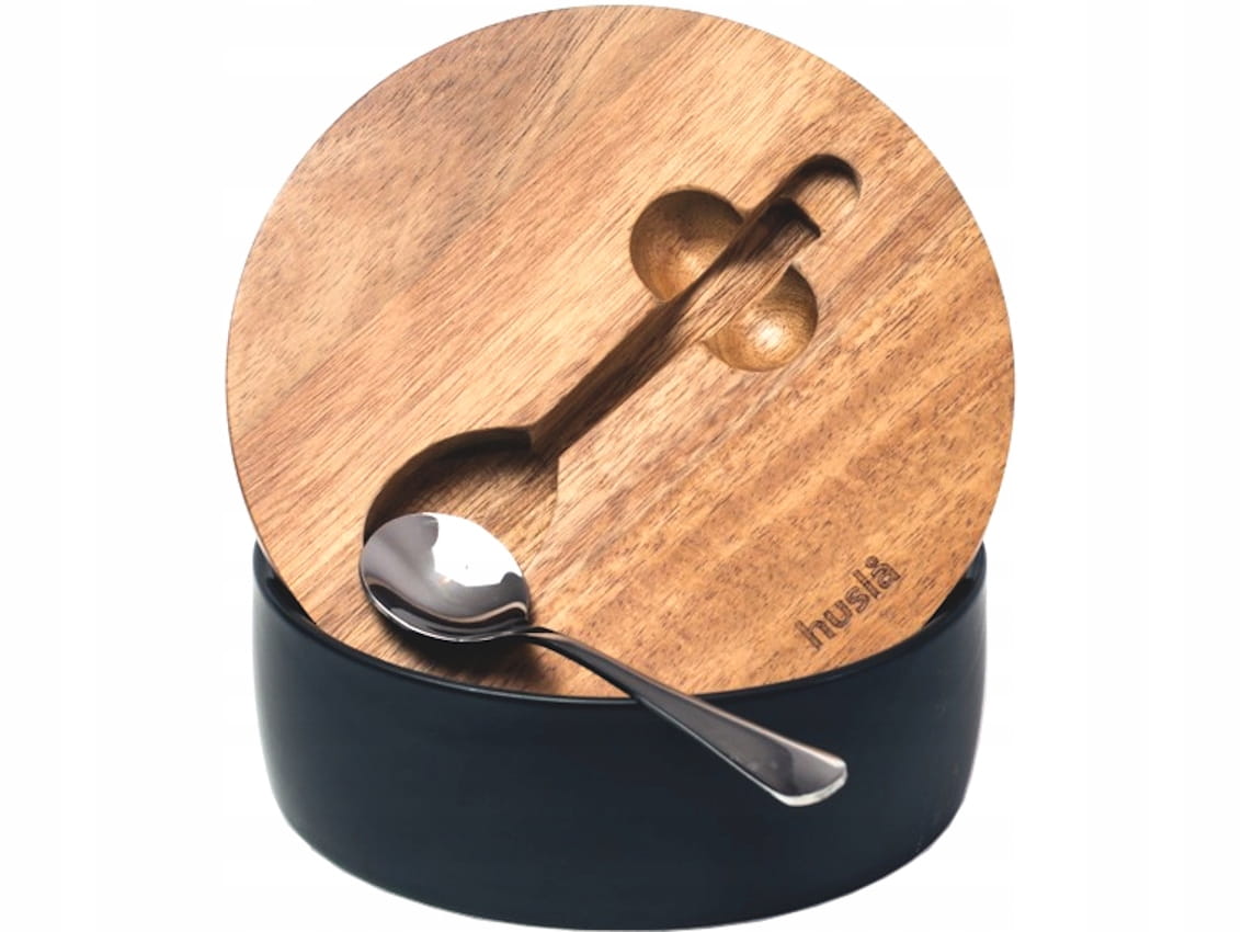 Cukiernica wykonana z ceramiki, z pokrywą z drewna akacjowego oraz łyżeczką ze stali nierdzewnej. Czarny kolor ceramiki w połączeniu z drewnem akacjowym sprawia, iż doskonale prezentuje się na każdym stole, nadając mu elegancji i oryginalności.